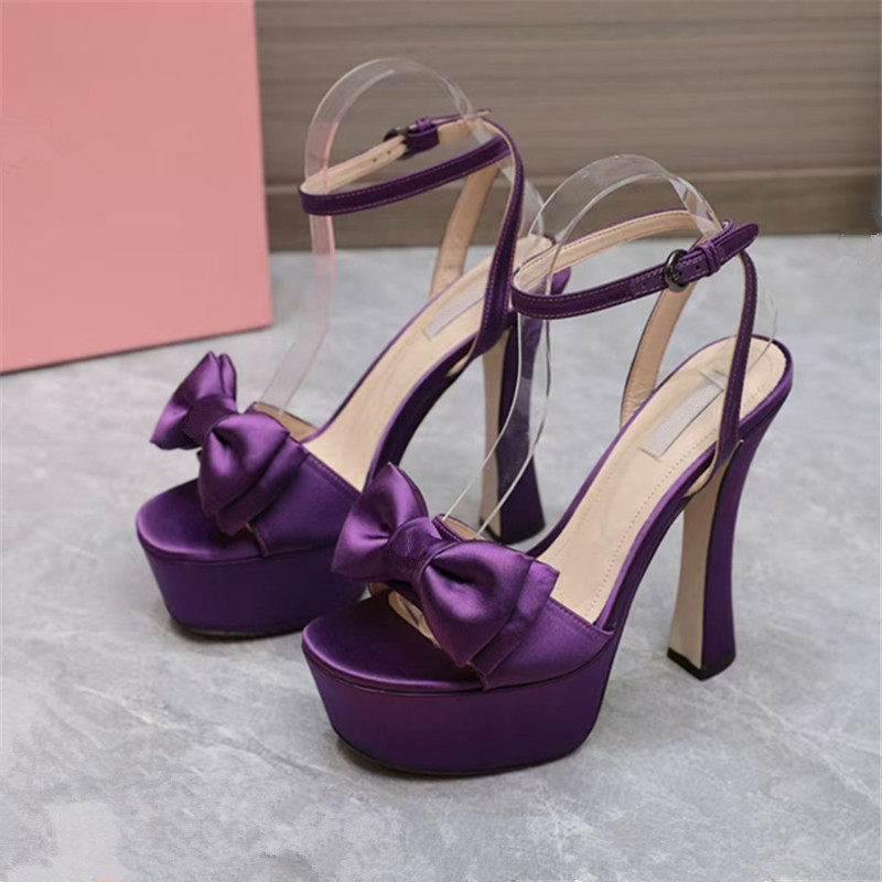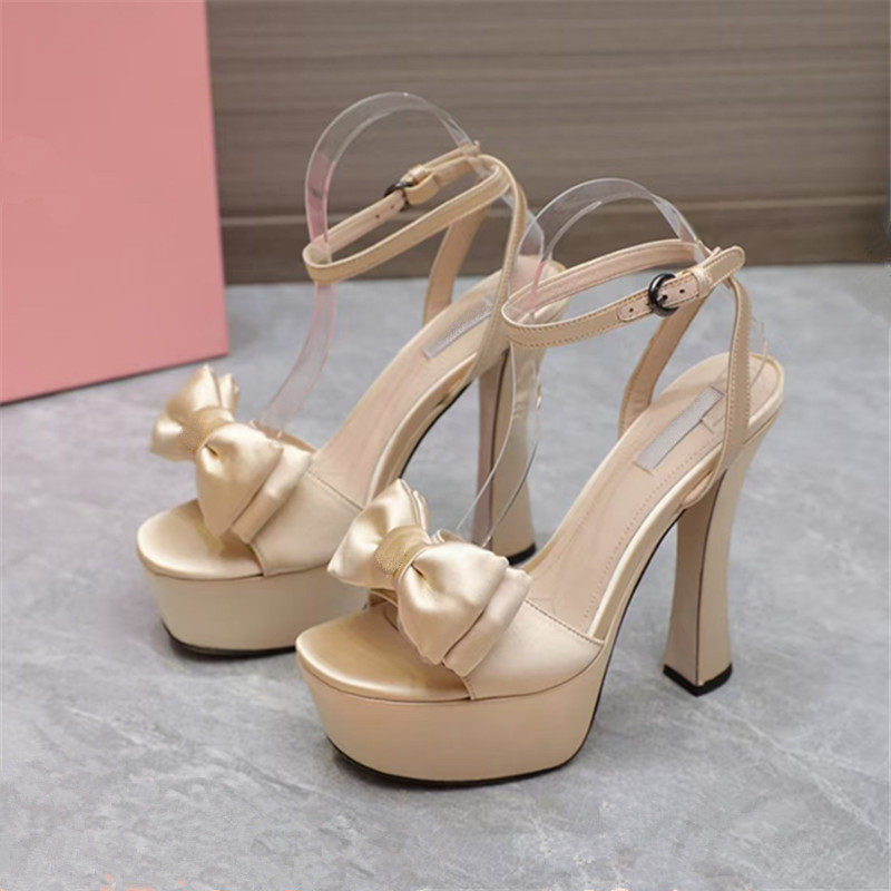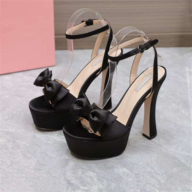 26新款夏季凉鞋14CM高跟凉鞋女厚水台粗跟走秀鞋女车展女鞋蝴蝶结