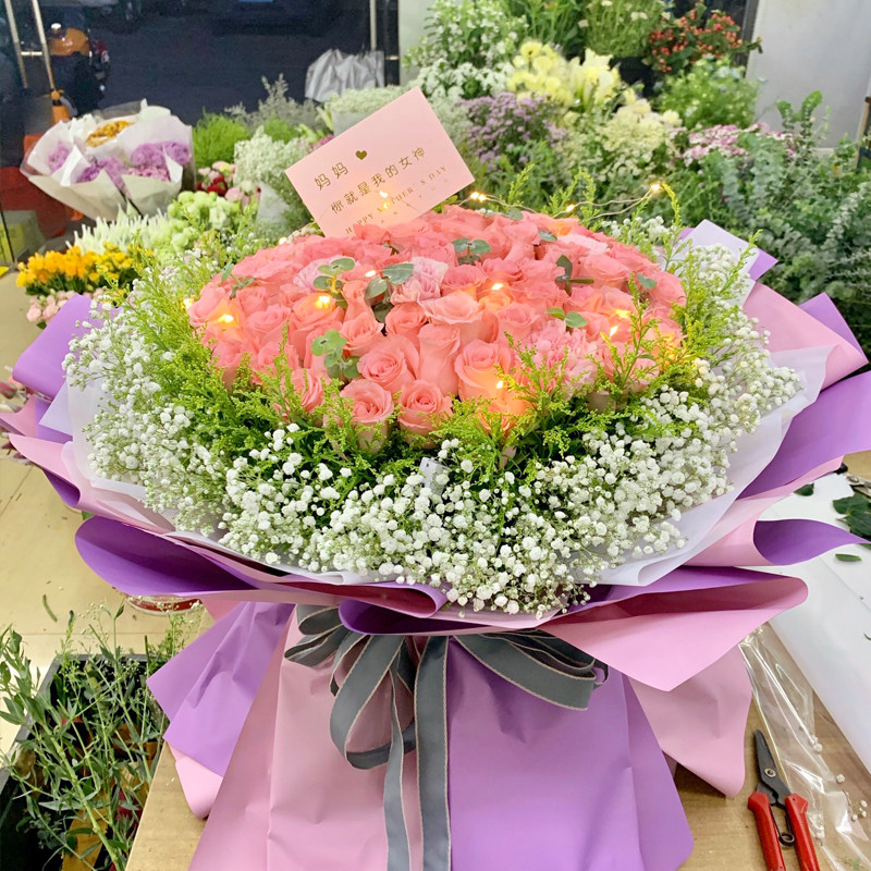广州中山鲜花速递玫瑰花康乃馨同城情人节混搭生日花束母亲节送花