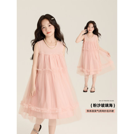 Amybaby女童连衣裙夏季2025新款韩系甜美风网纱气质无袖公主裙