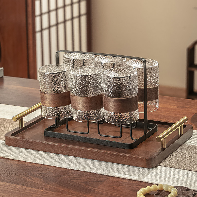 中式复古玻璃水杯套装待客家用客厅茶具茶杯杯具家庭轻奢喝水杯子