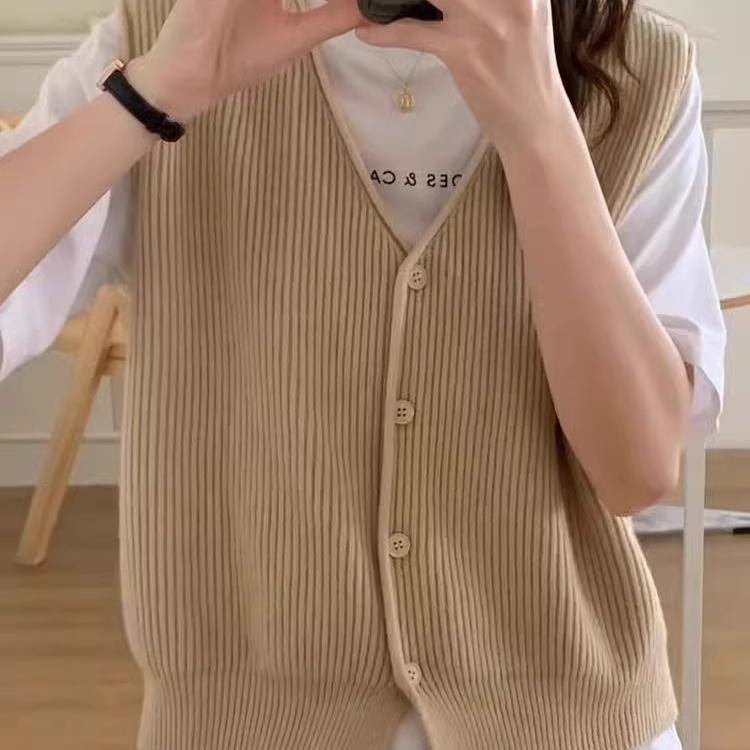 秋季开衫女士毛衣针织马甲女款2024新款时尚背心马夹衬衫叠穿外穿