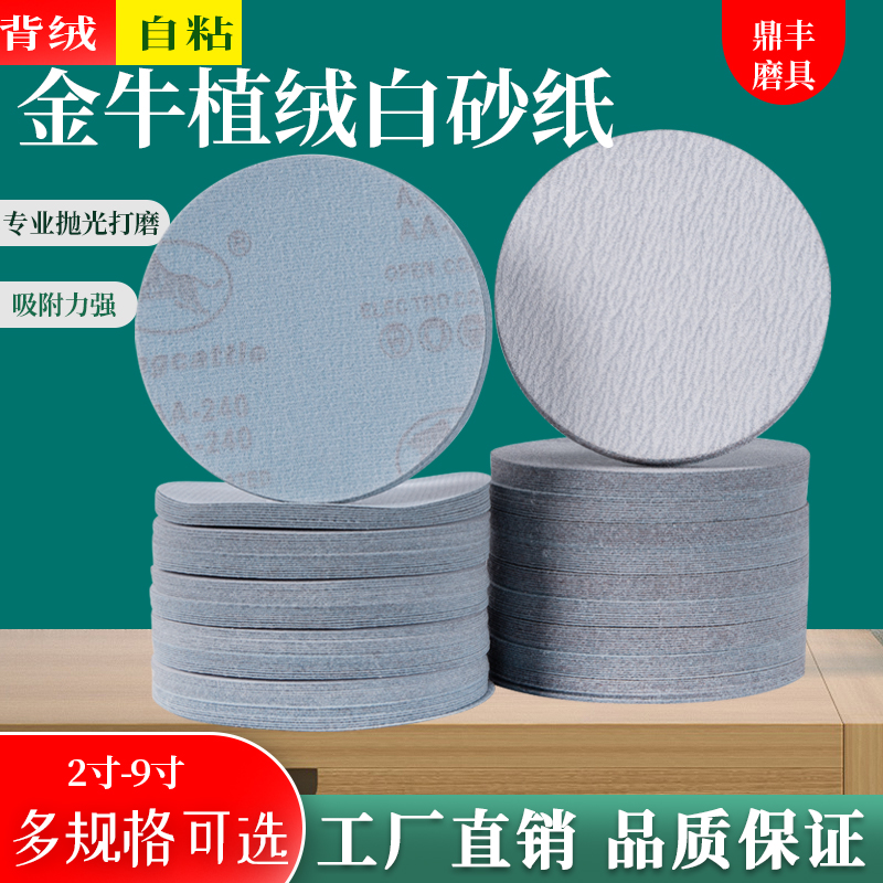 金牛5寸植绒砂纸4寸7寸9寸气磨机干磨白砂打磨抛光油漆圆盘砂纸片