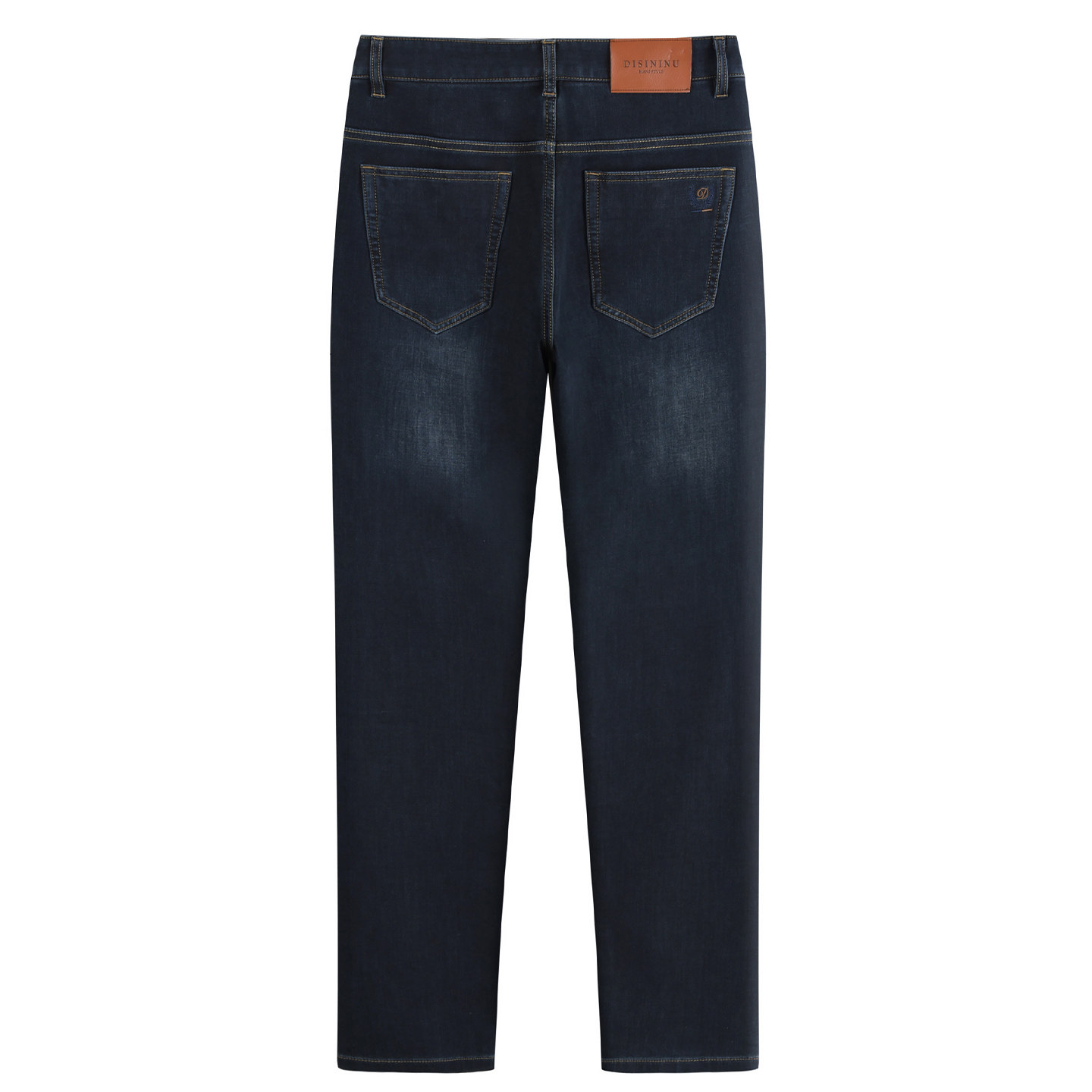 迪仕尼奴直筒牛仔裤男士秋冬宽松合体百搭弹力水洗深色牛仔长裤