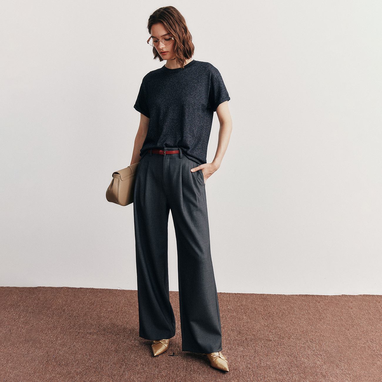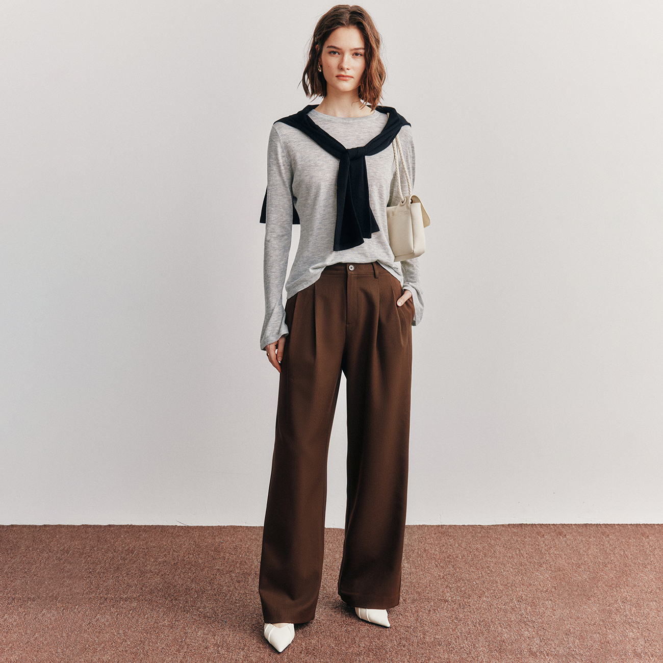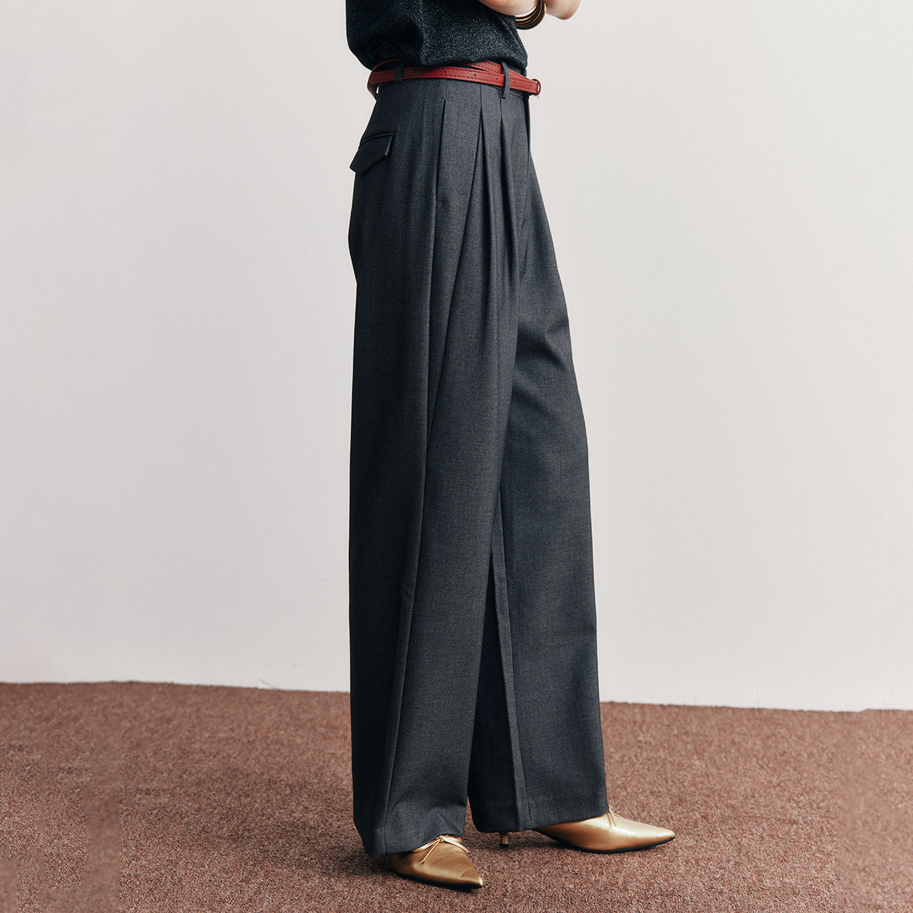 百搭双褶直筒阔腿西装裤长裤