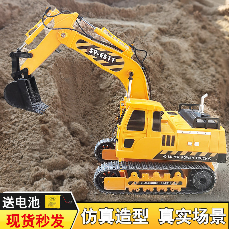 儿童遥控挖掘机玩具车男孩超大号工程车挖土X电动玩具礼物