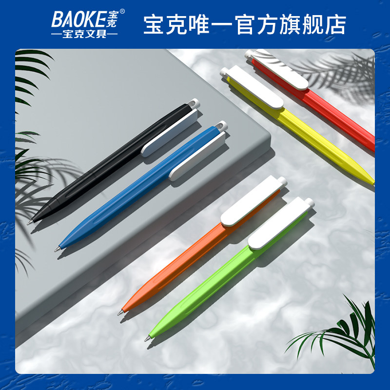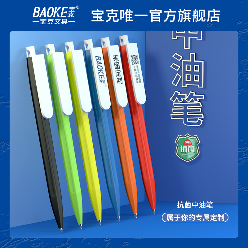 宝克Baoke中油笔B69抗菌广告笔定制logo刻字圆珠笔多色按压式速干中性笔办公用品0.7mm二维码印刷教师用笔