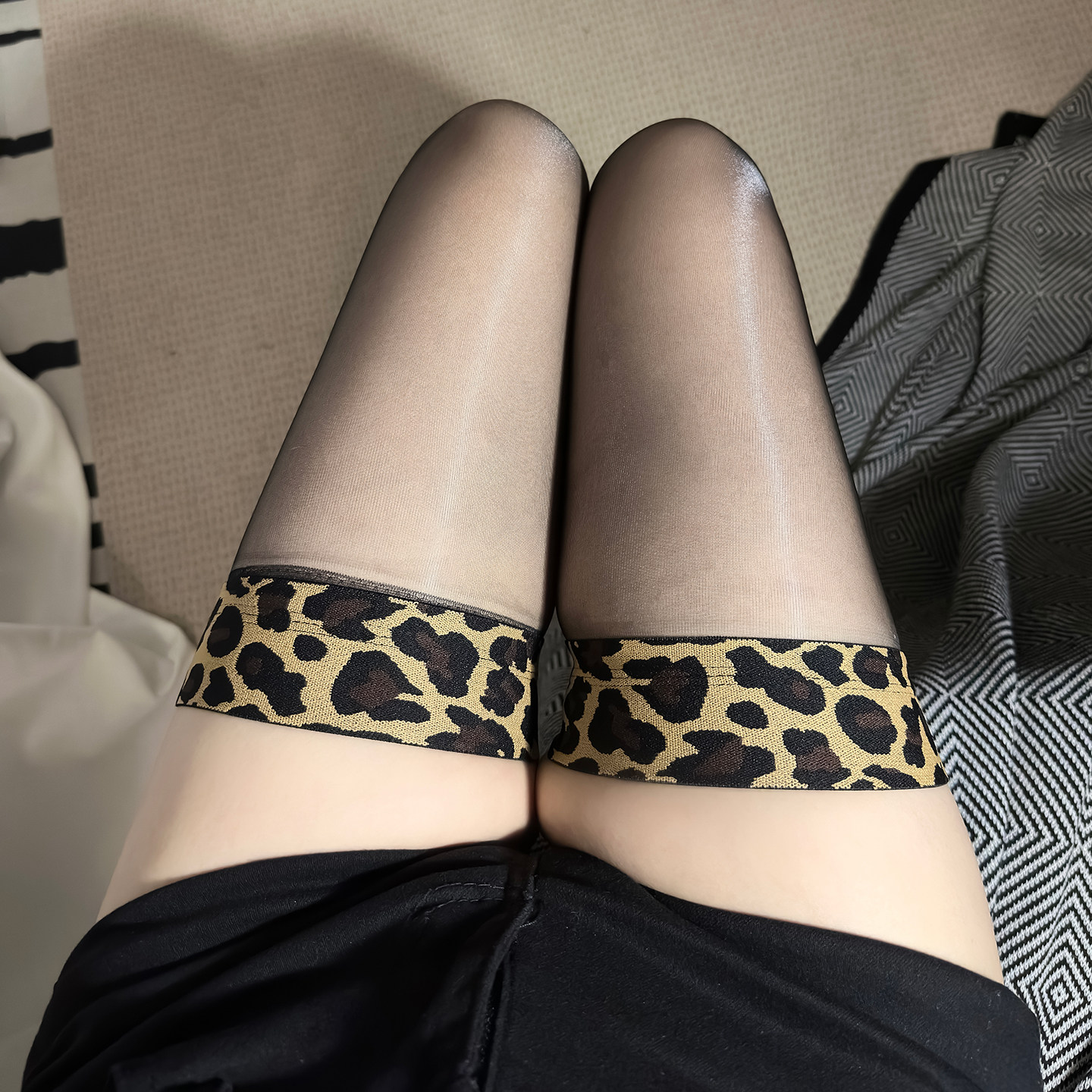 雀畔性感豹纹极光油亮丝袜过膝吊带一体袜女超薄黑丝丝袜性感连体