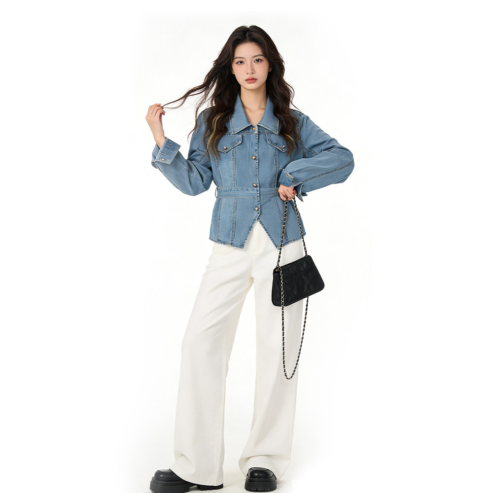 独特超好看复古小众收腰显瘦别致上衣女春季新款百搭休闲牛仔衬衫