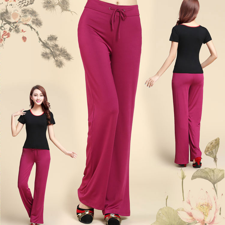 瑜伽裤女莫代尔夏健身瑜珈舞蹈裤大码广场舞服装裤子微喇长裤春秋