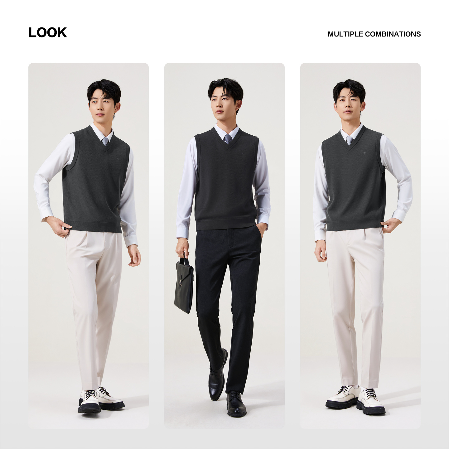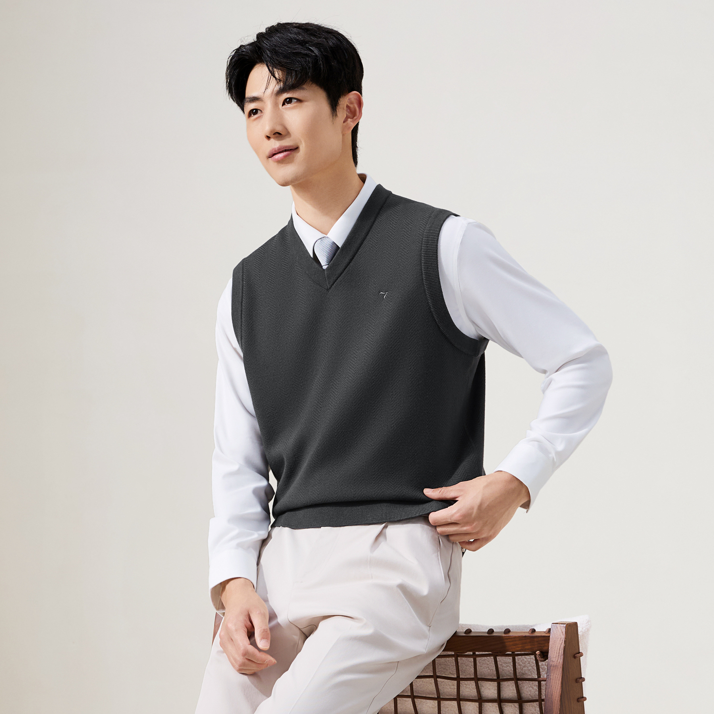 【含羊毛加绒马甲】柒牌商务保暖V领休闲毛衣百搭男式针织衫