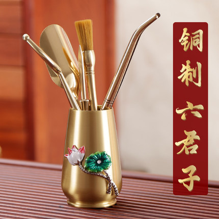 黄铜六君子茶筒大号茶洗茶具配件套装家用中式茶道6君子泡茶工具