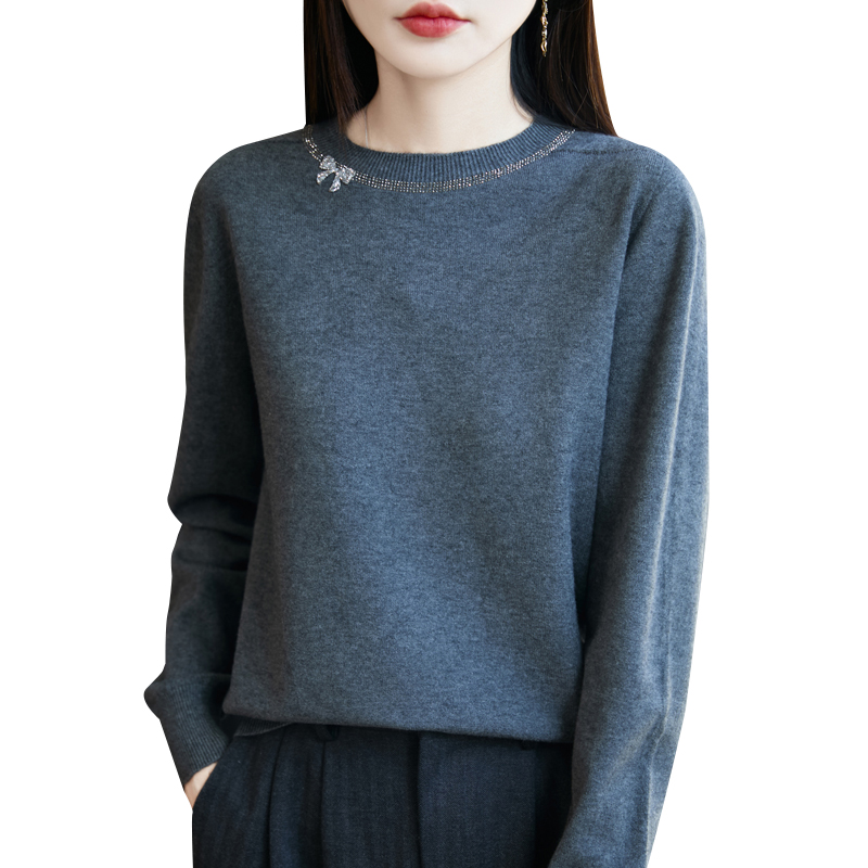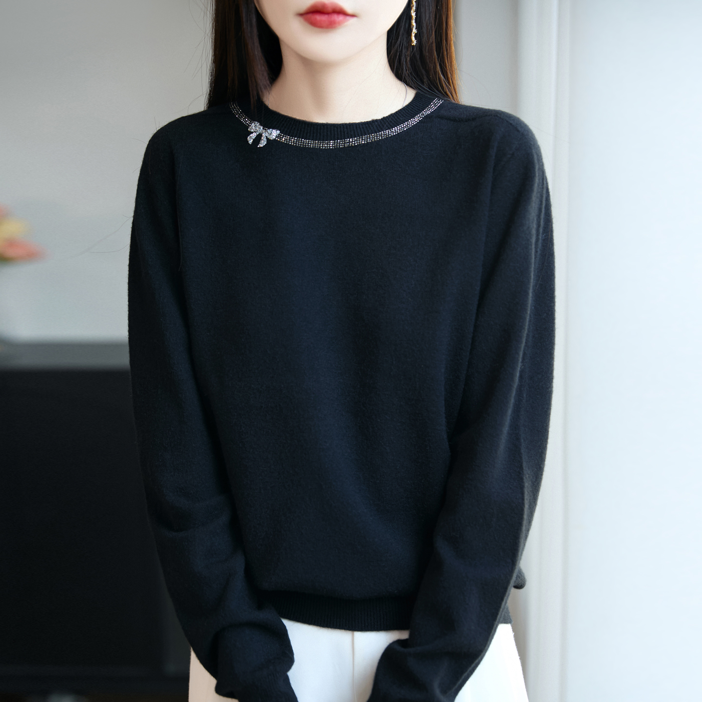 气质轻奢烫钻圆领宽松羊毛针织毛衣女25秋冬时尚超洋气外穿打底衫