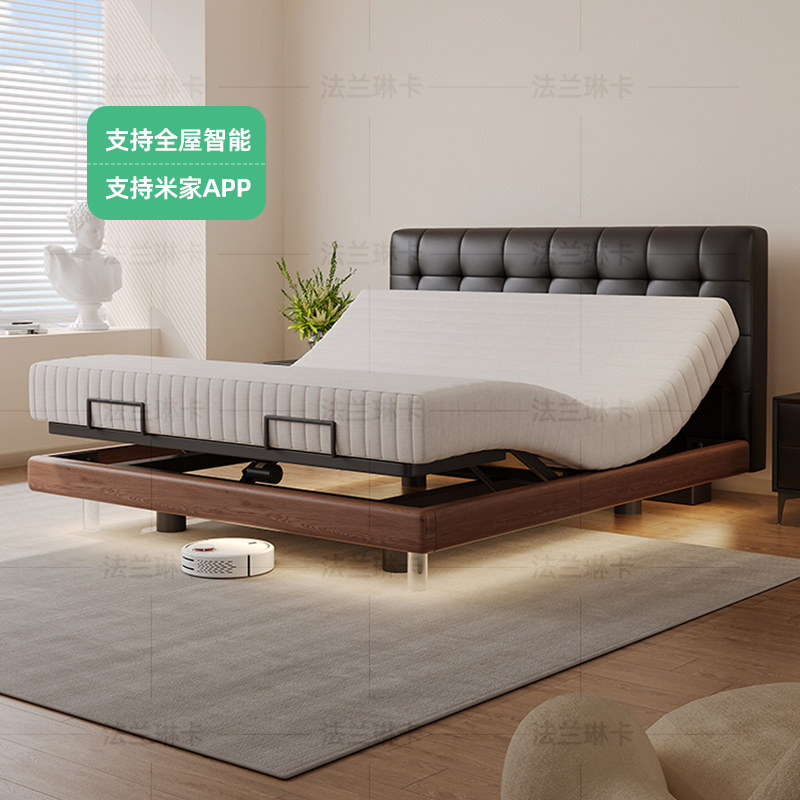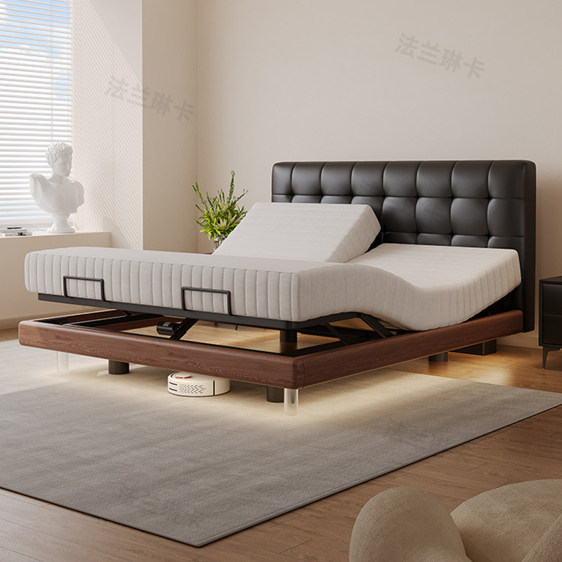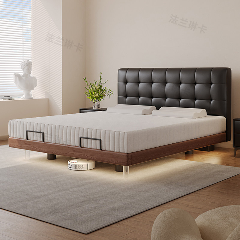 斯帝罗兰中古风多功能高端电动智能真皮床架1.8米主卧悬浮头层牛