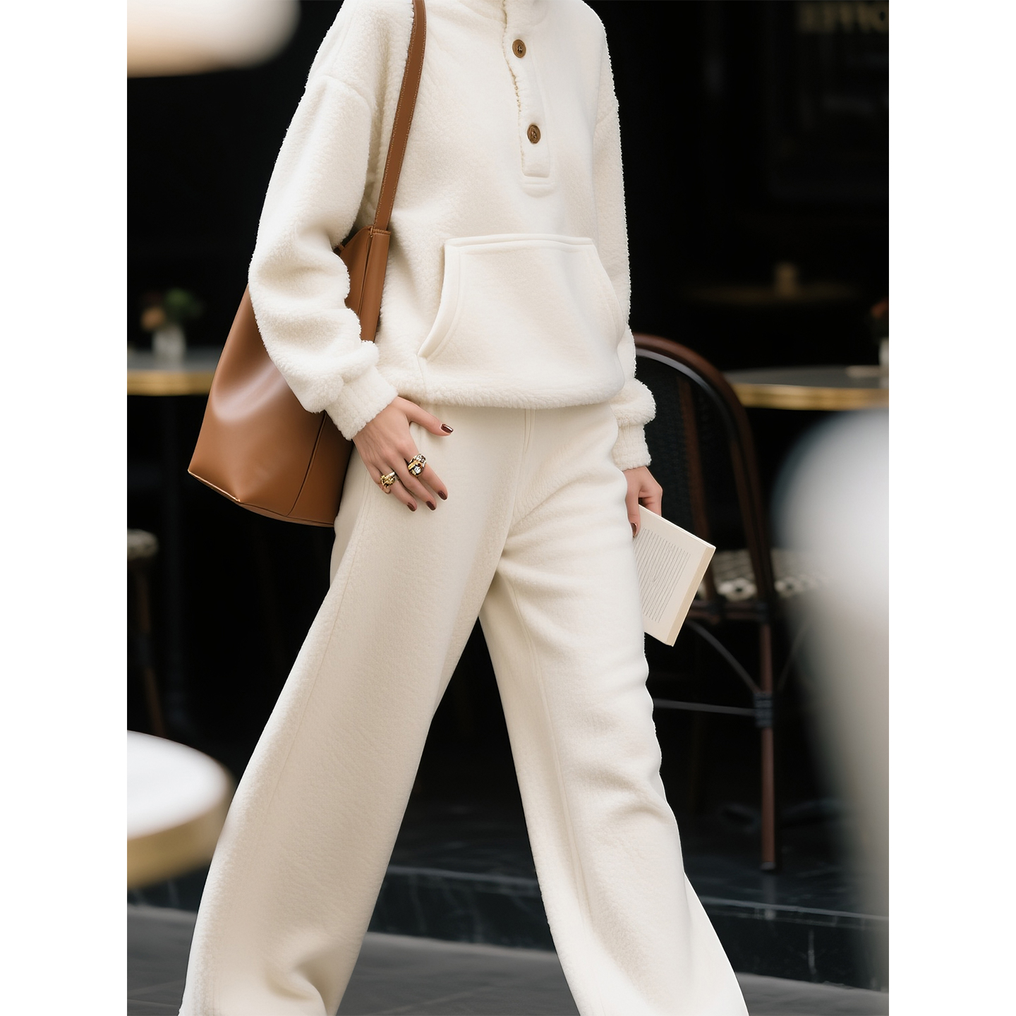 白色摇粒绒套装女2025年秋冬新款高级感时尚休闲运动卫衣两件套
