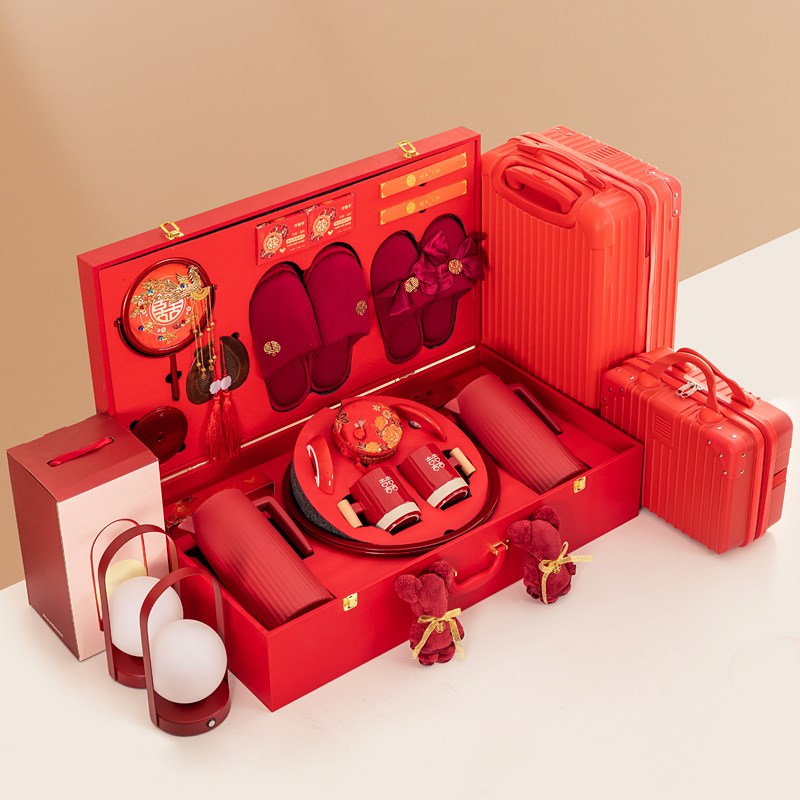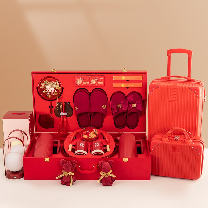 唐呈长明灯陪嫁物品女方全套结婚用品大全高档娘家嫁妆套装行李箱