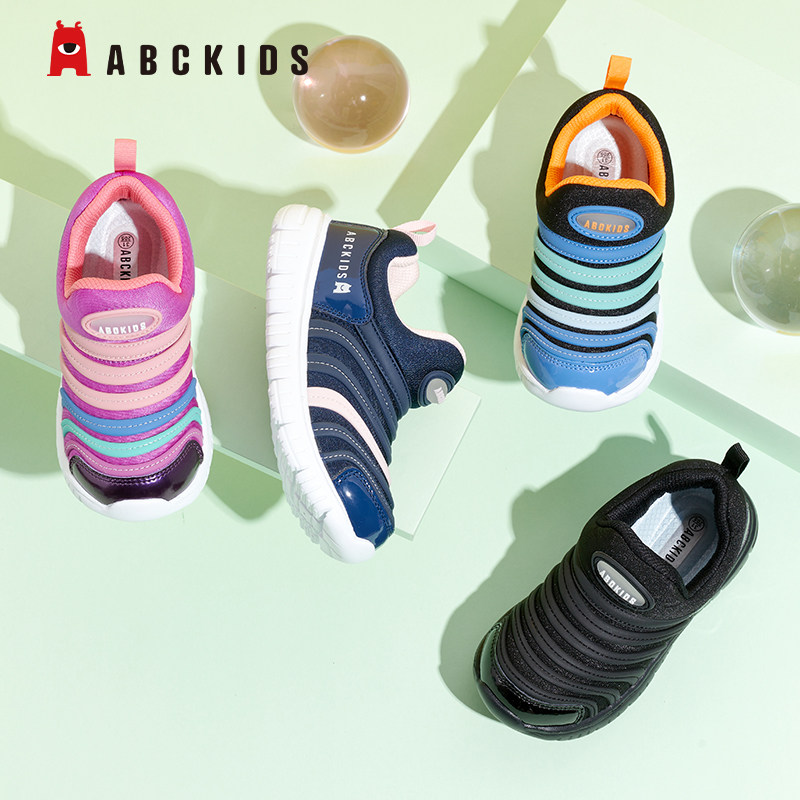 Abckids童鞋女童毛毛虫鞋男童宝宝休闲鞋25秋冬款儿童加绒运动鞋