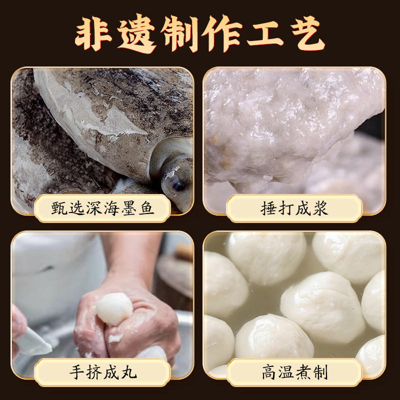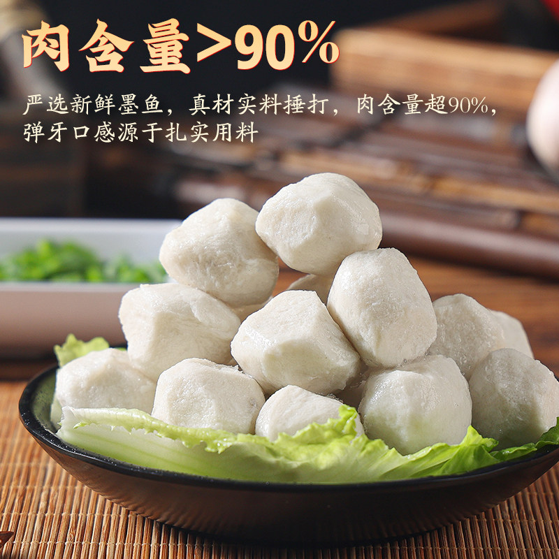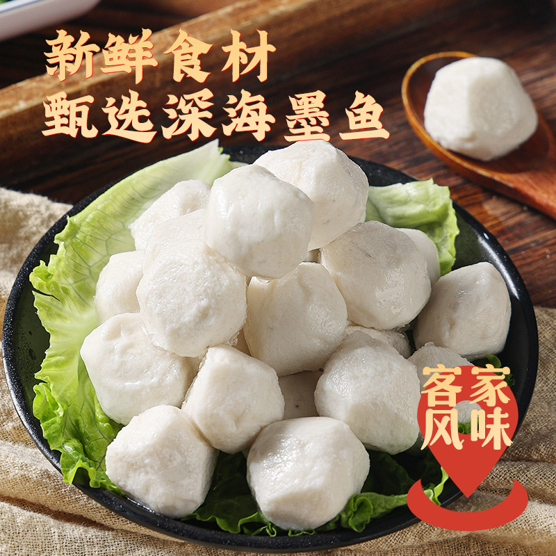 正宗客家墨鱼丸纯手工纯鱼丸广东特产无添加墨鱼饼墨鱼滑海鲜4袋