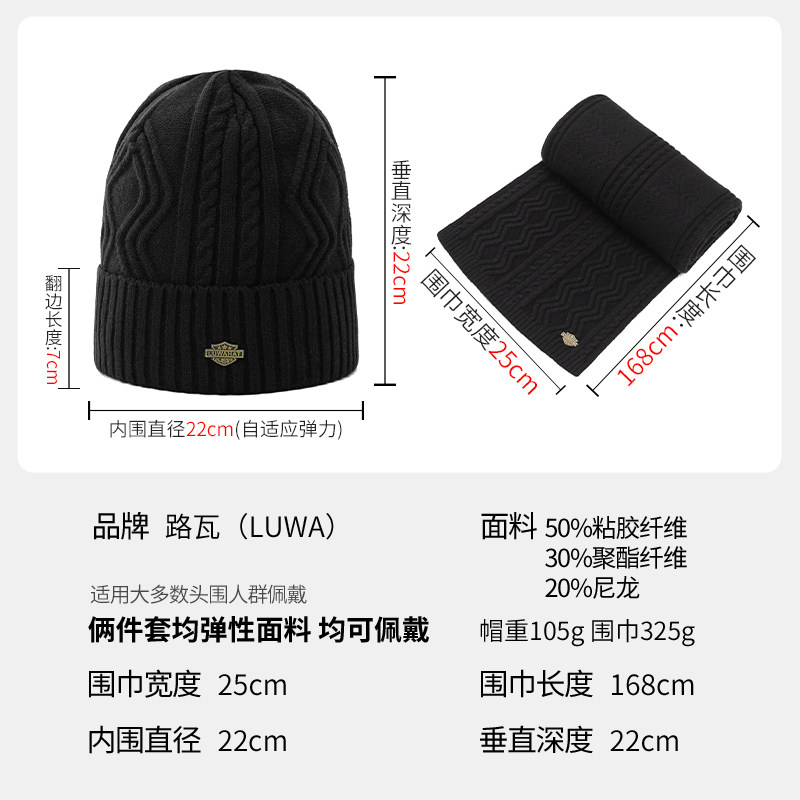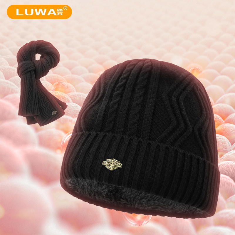 路瓦帽子男围巾两件套冬季防寒加绒毛线帽韩版保暖加厚中年针织帽