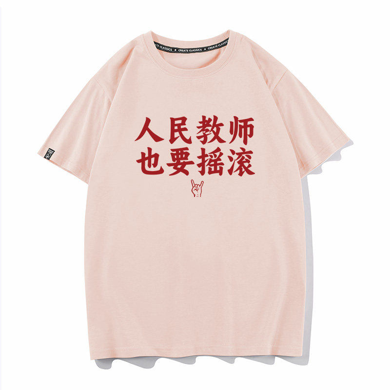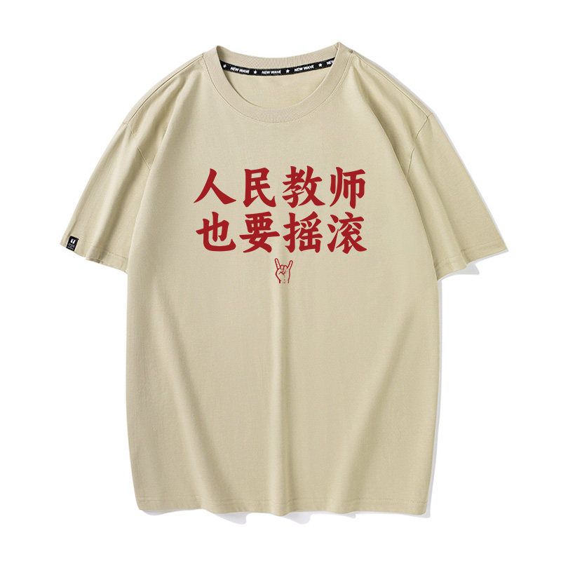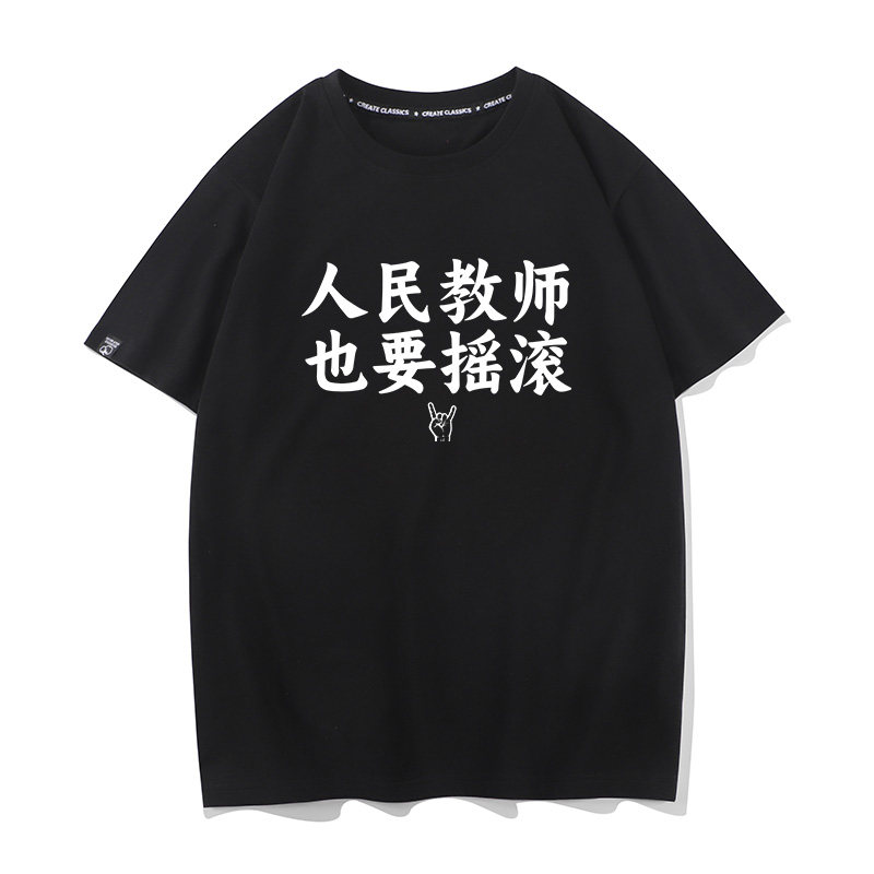 秀洛人民教师也要摇滚文字定制短袖T恤男女纯棉宽松音乐节应援服