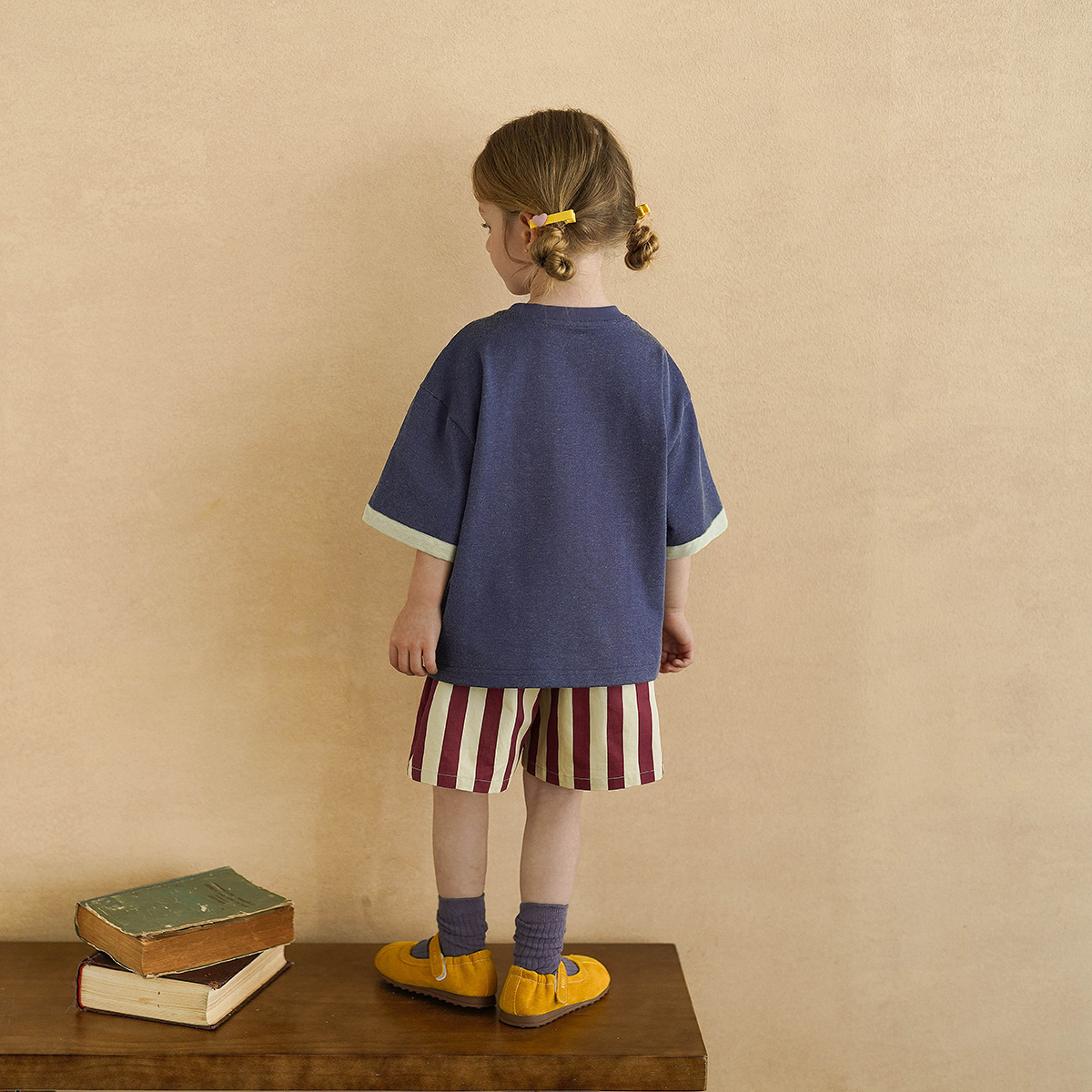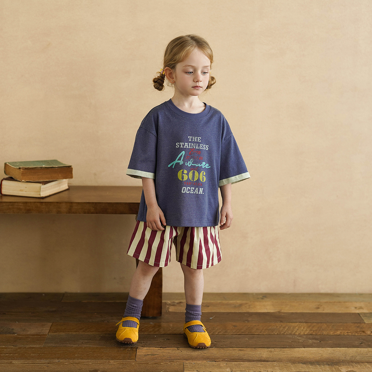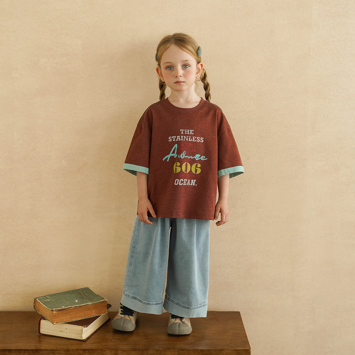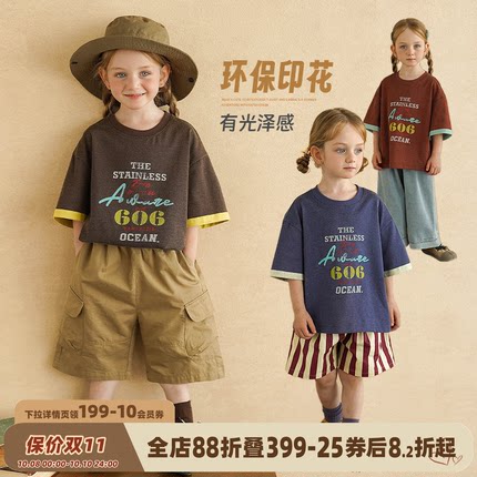 砚台家女童美式复古T恤2025夏装新款儿童印花短袖上衣女宝宝套装