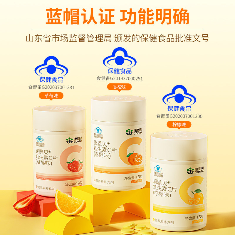 康恩贝维生素c咀嚼片草莓味补充vc含片100片男女官方正品阿里健康