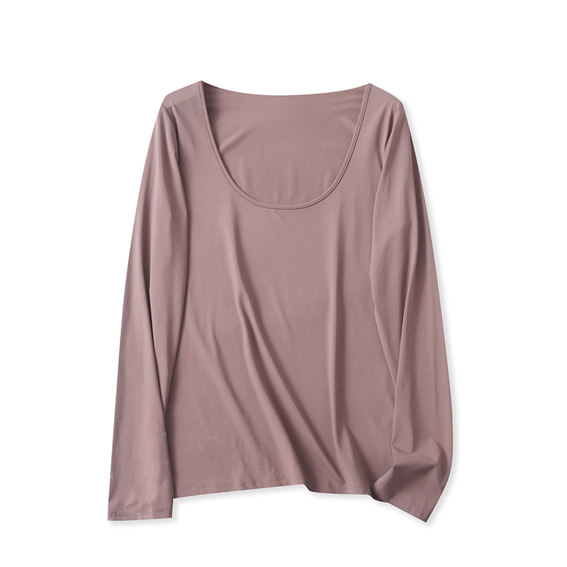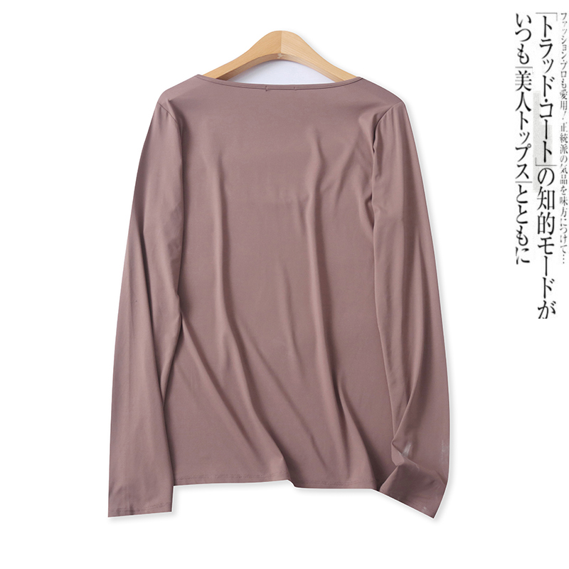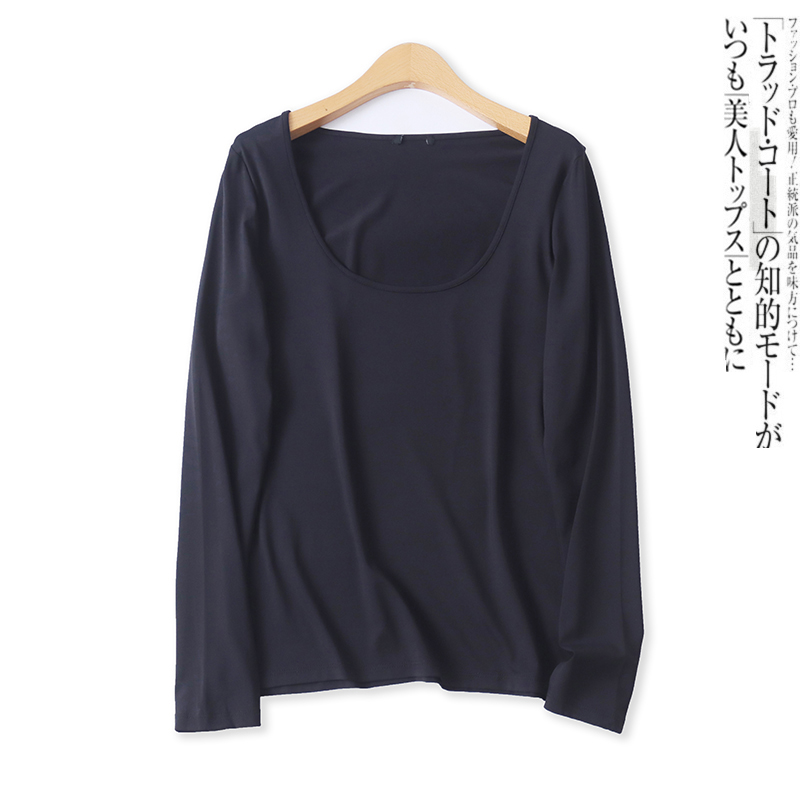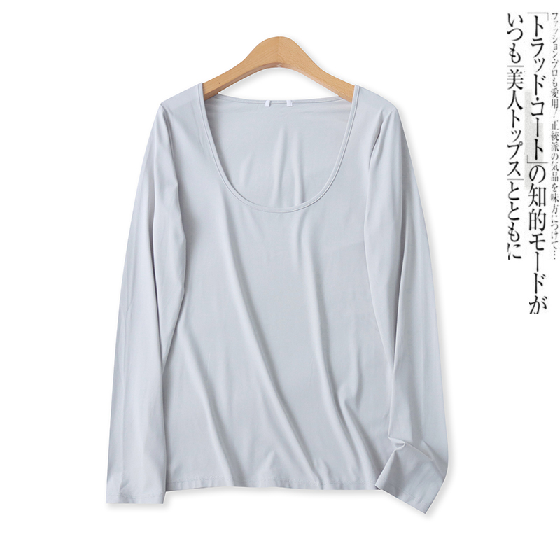 打底衫春季新款外贸女装纯色百搭深U领修身弹力长袖套头上衣17695