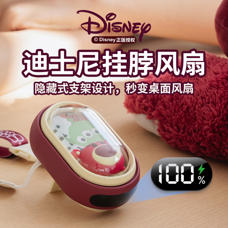 BLINBLIN迪士尼儿童草莓熊挂脖风扇安全无叶静音扇小型便携式随身迷你风扇