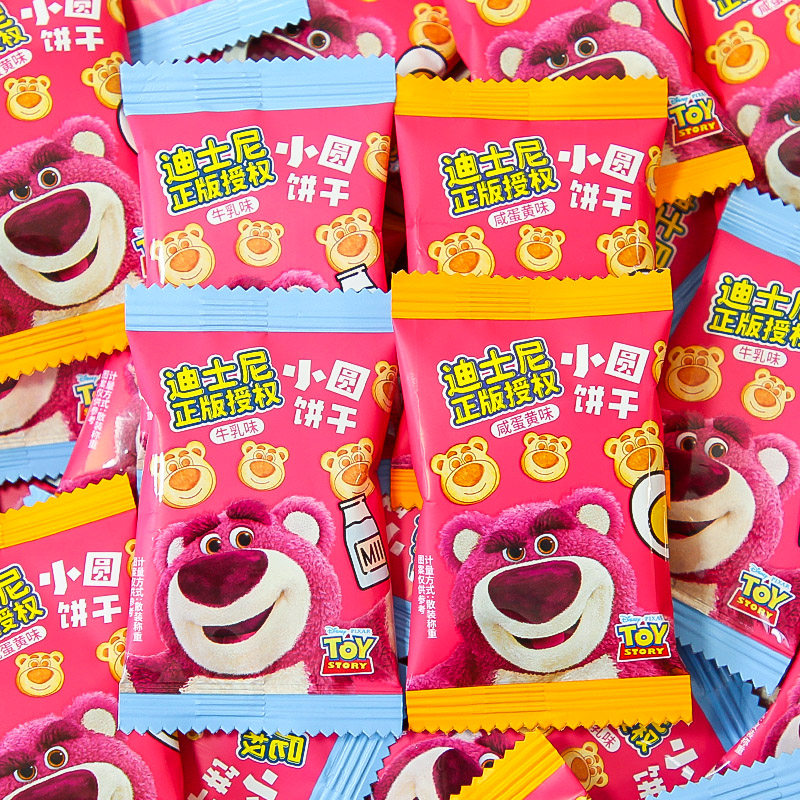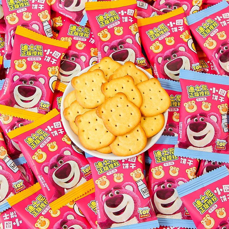 迪士尼草莓熊小圆饼单独小包装儿童营养薄脆饼干小吃零食散装批发