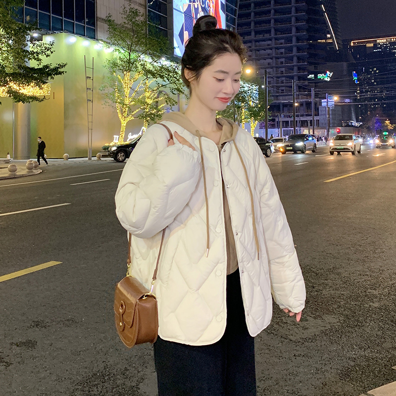 轻薄菱格羽绒服女短款2025新款秋冬小个子设计感圆领内胆薄款外套