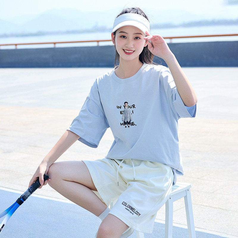 初中学生t恤纯棉短袖女时尚两件套高中套装五分裤少女夏装休闲装
