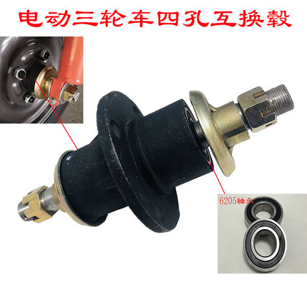 四孔互换毂器法兰盘工程电动三轮车前轮中轴6205轴承双轴承配件