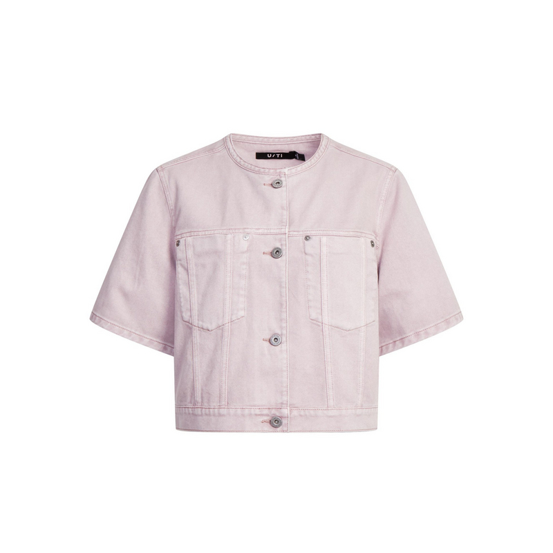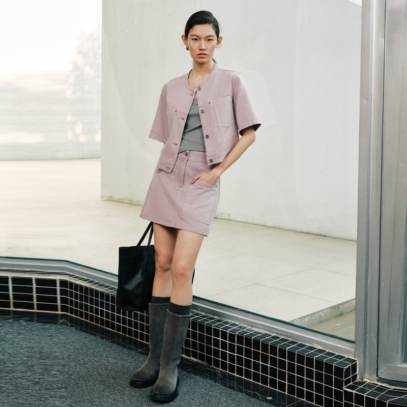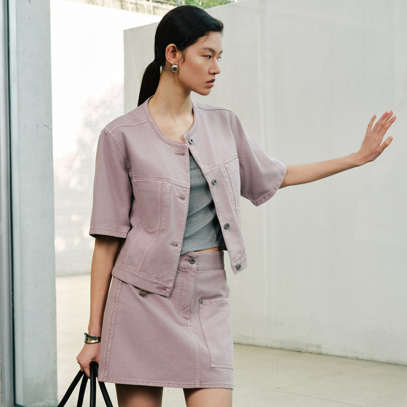 专柜新款U/TI尤缇2025秋季粉紫色复古水洗牛仔外套简约短上衣女装