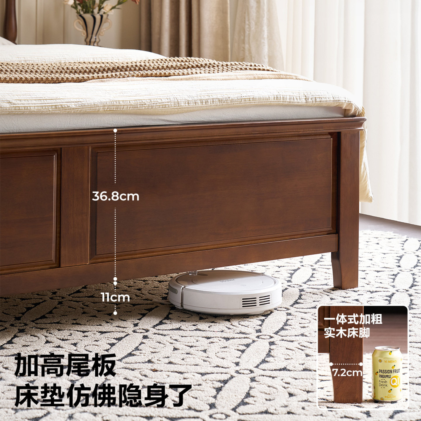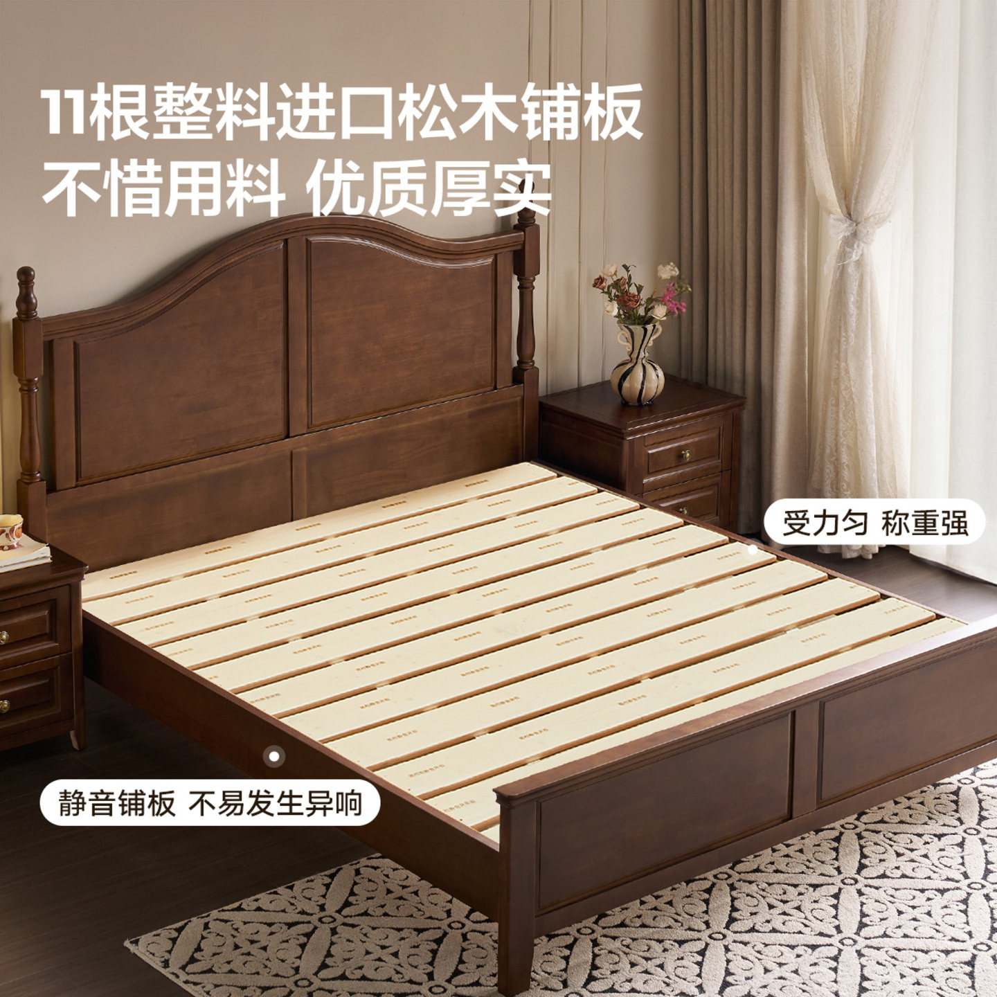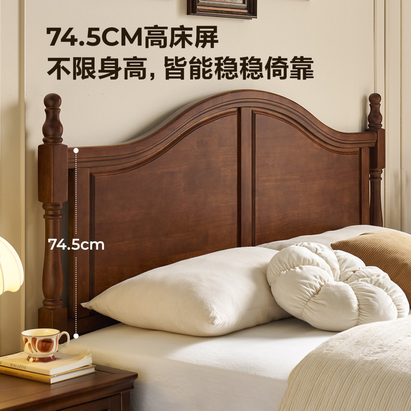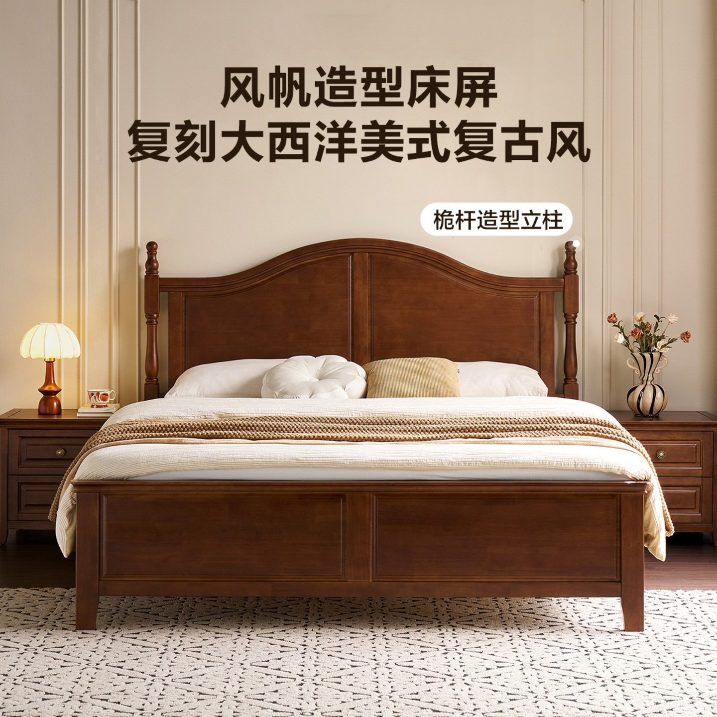 全友家居美式实木床1米8双人床架中古风卧室家具复古风单人床1米5