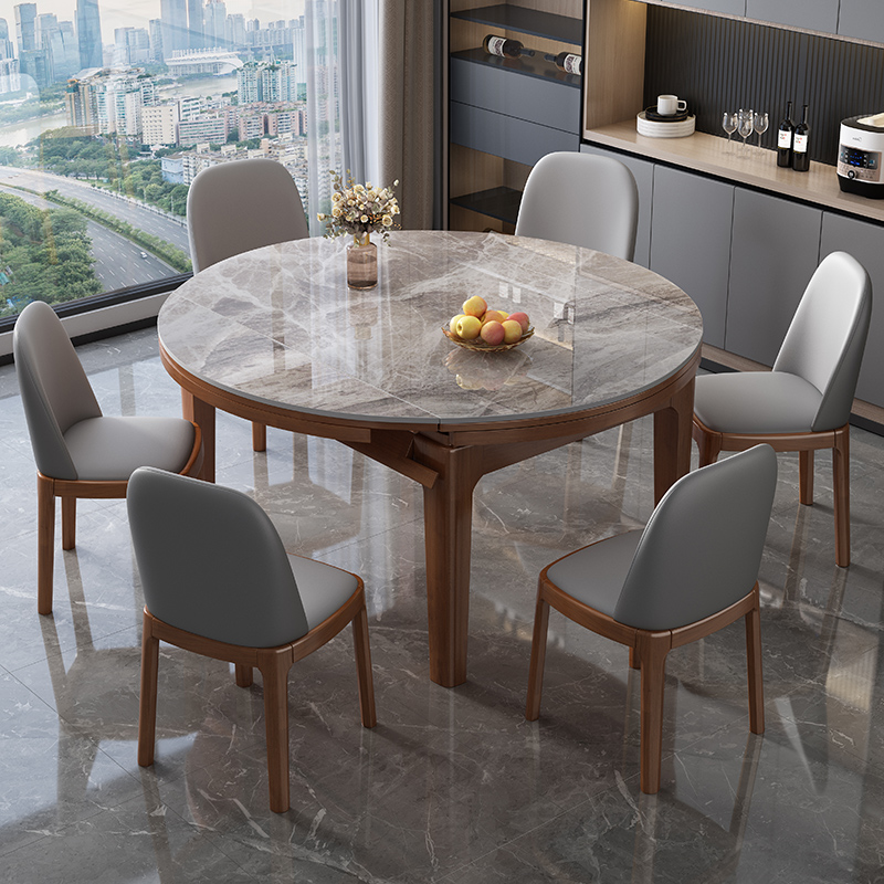 轻奢岩板餐桌椅组合轻奢家用小户型饭厅可伸缩折叠圆形实木饭桌子