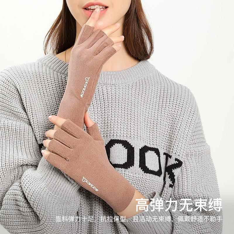 上班专用手套加绒半指秋冬男女露手指头德绒护腕亲子加厚新款护腕