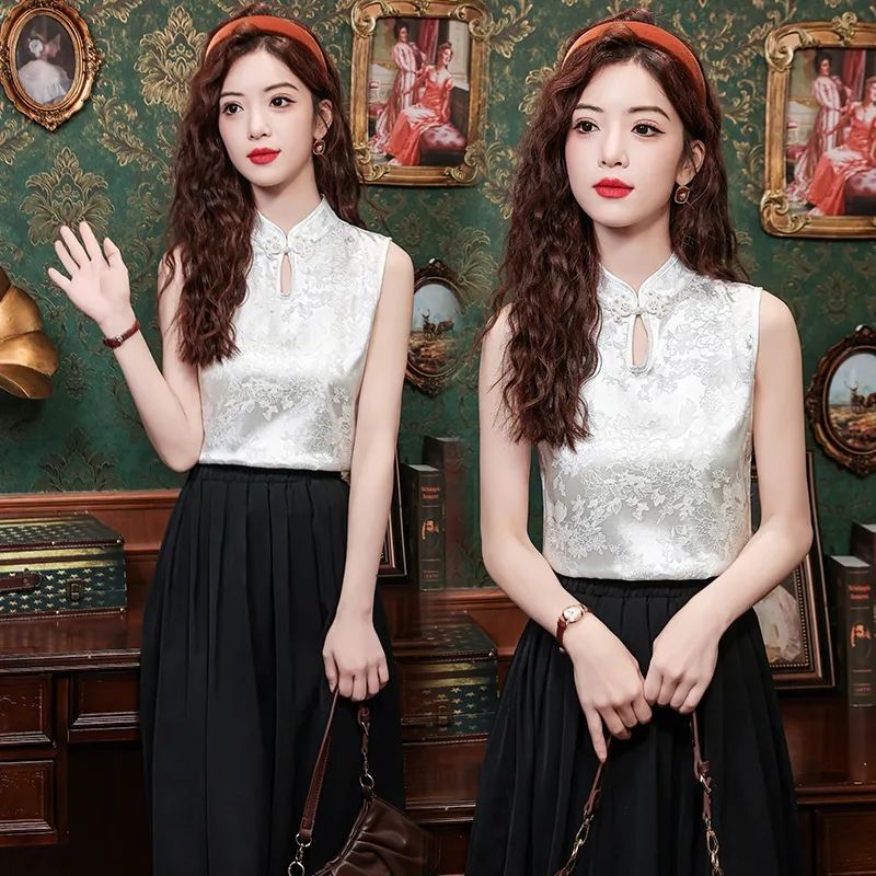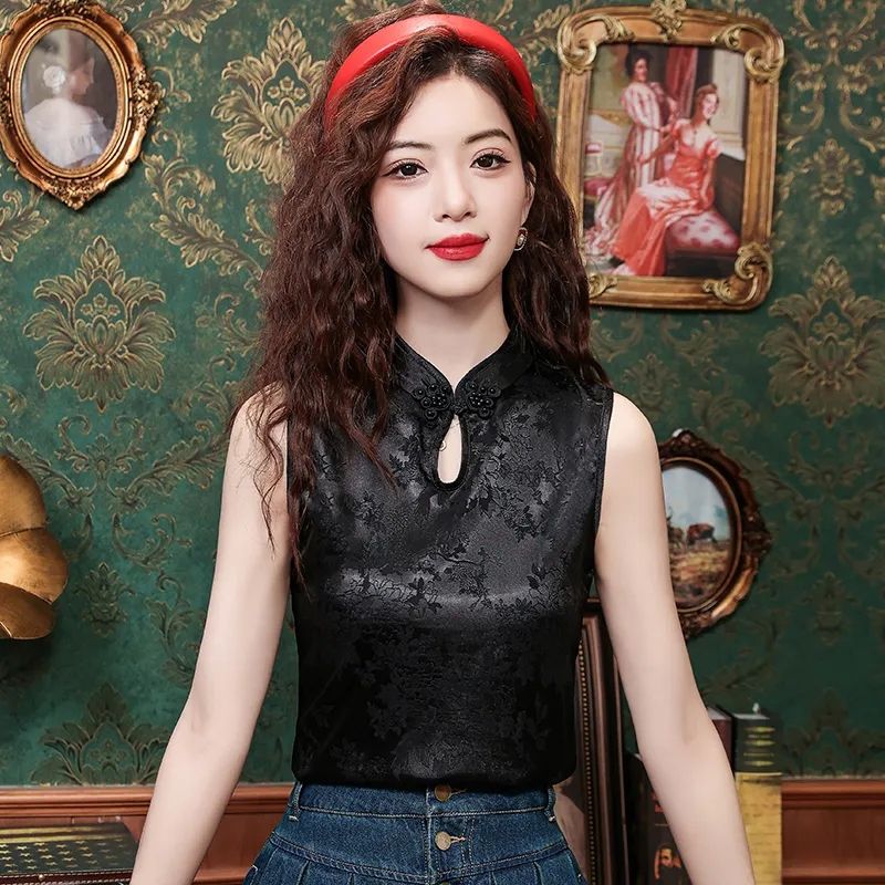 中式吊带背心女西装内搭夏季新款时尚提花无袖缎面打底衫外穿上衣