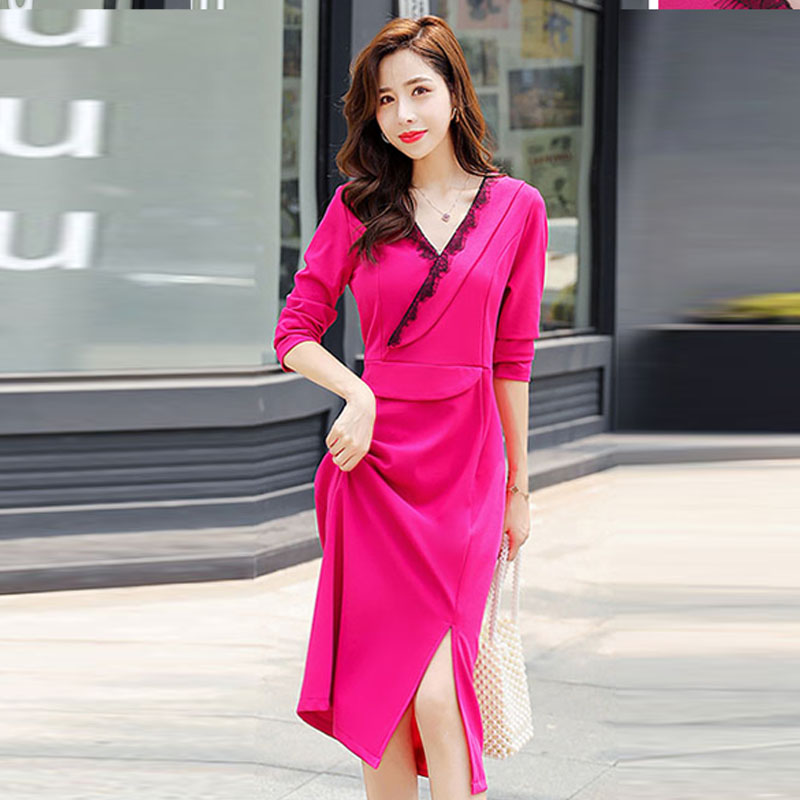 深依度2023夏装新款大码女装春夏季时尚优雅简约修身连衣裙 1835