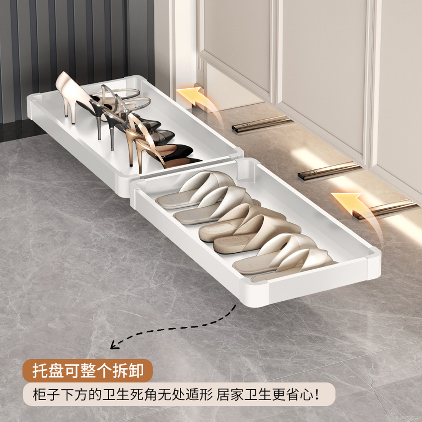 踢脚抽屉鞋柜底部下方反弹抽屉滑轨托盘收纳改造抽拉板玄关柜鞋架