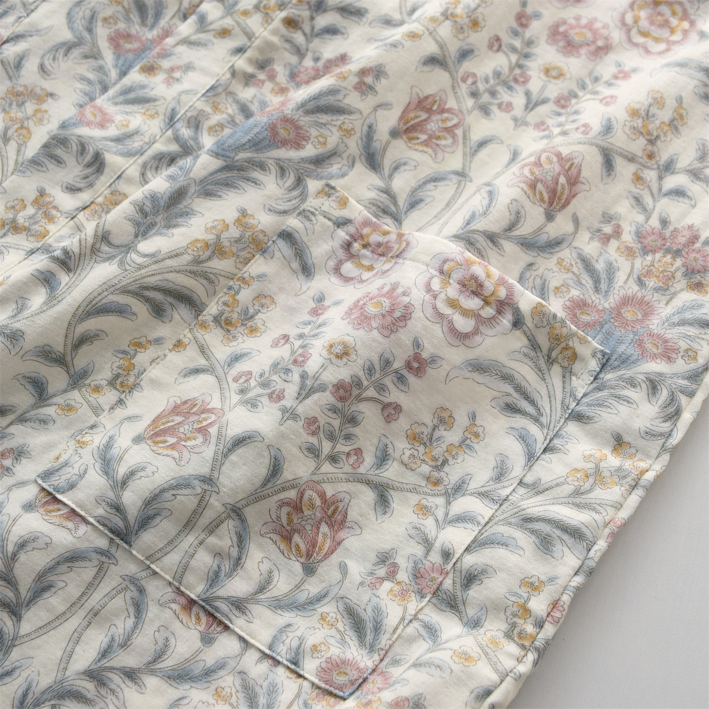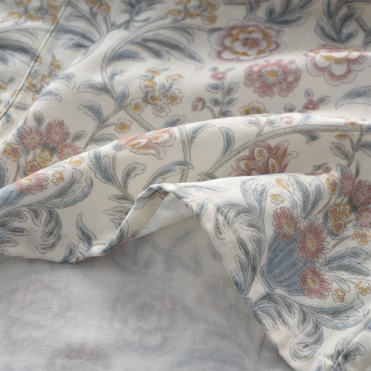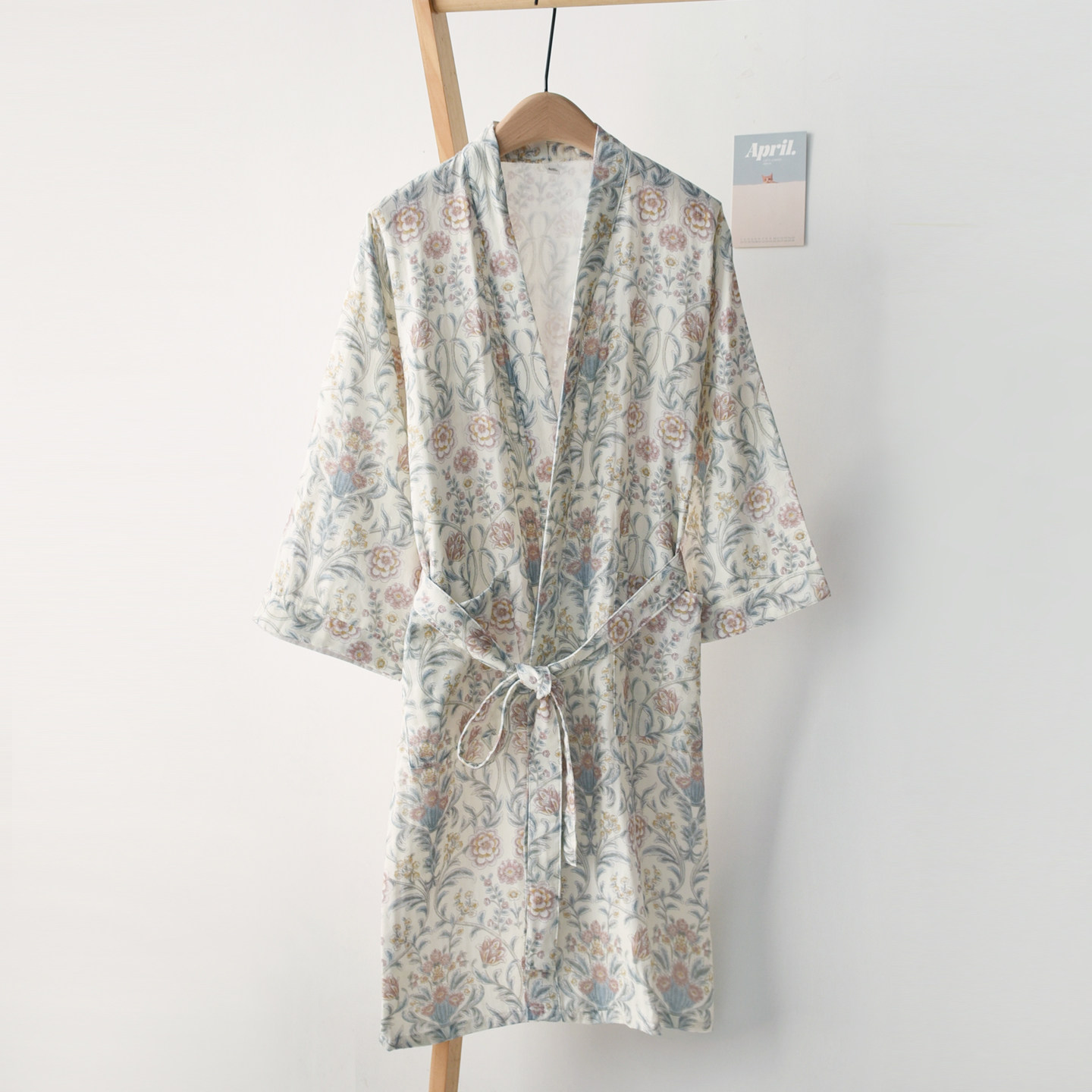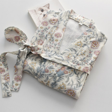 女纯棉纱布双层薄款田园印花睡袍