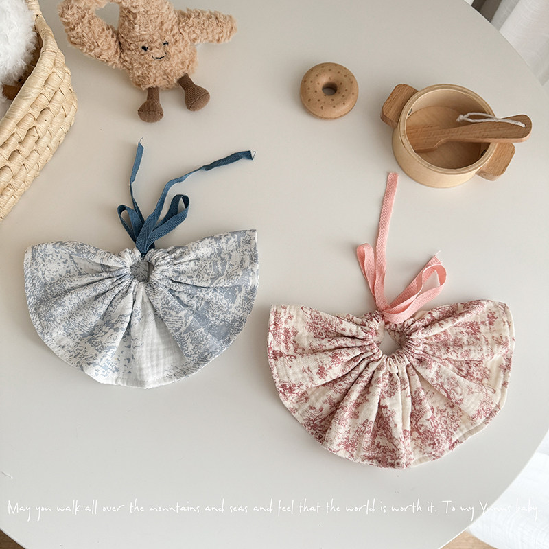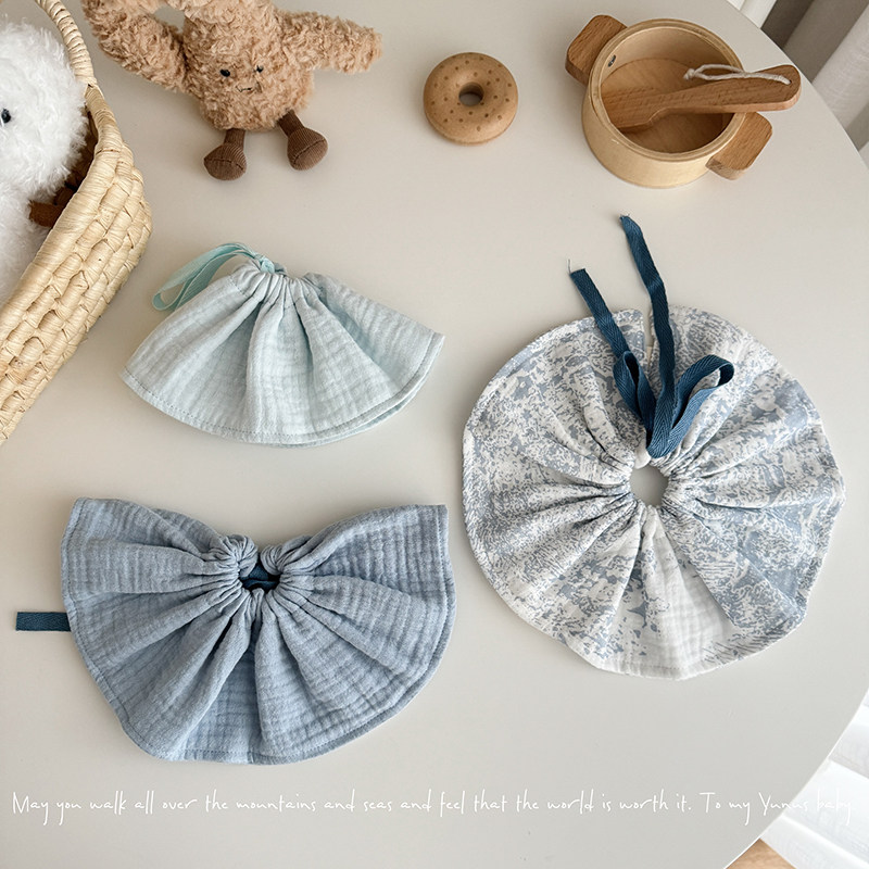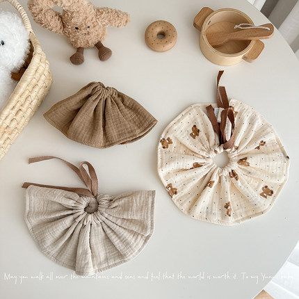 抽绳薄款纱布纯棉口水巾婴儿新生儿宝宝ins韩版围嘴0-2岁搭配