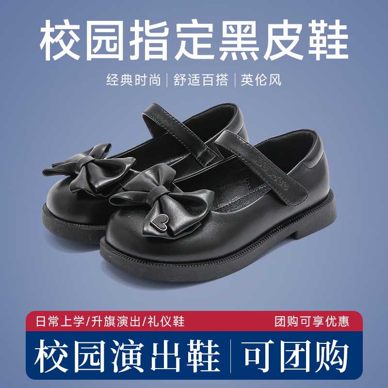 巴布豆童鞋官方旗舰店女童鞋子春款鞋款黑色小皮鞋软底儿童公主鞋