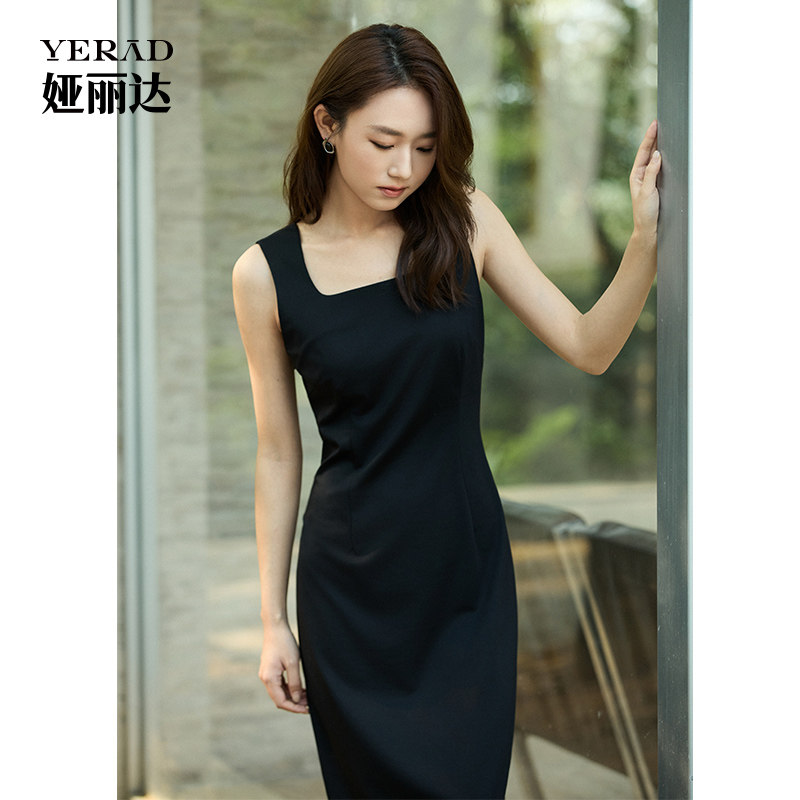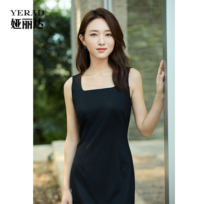 娅丽达商场同款简约风吊带裙女2025夏季新款气质修身黑色连衣裙