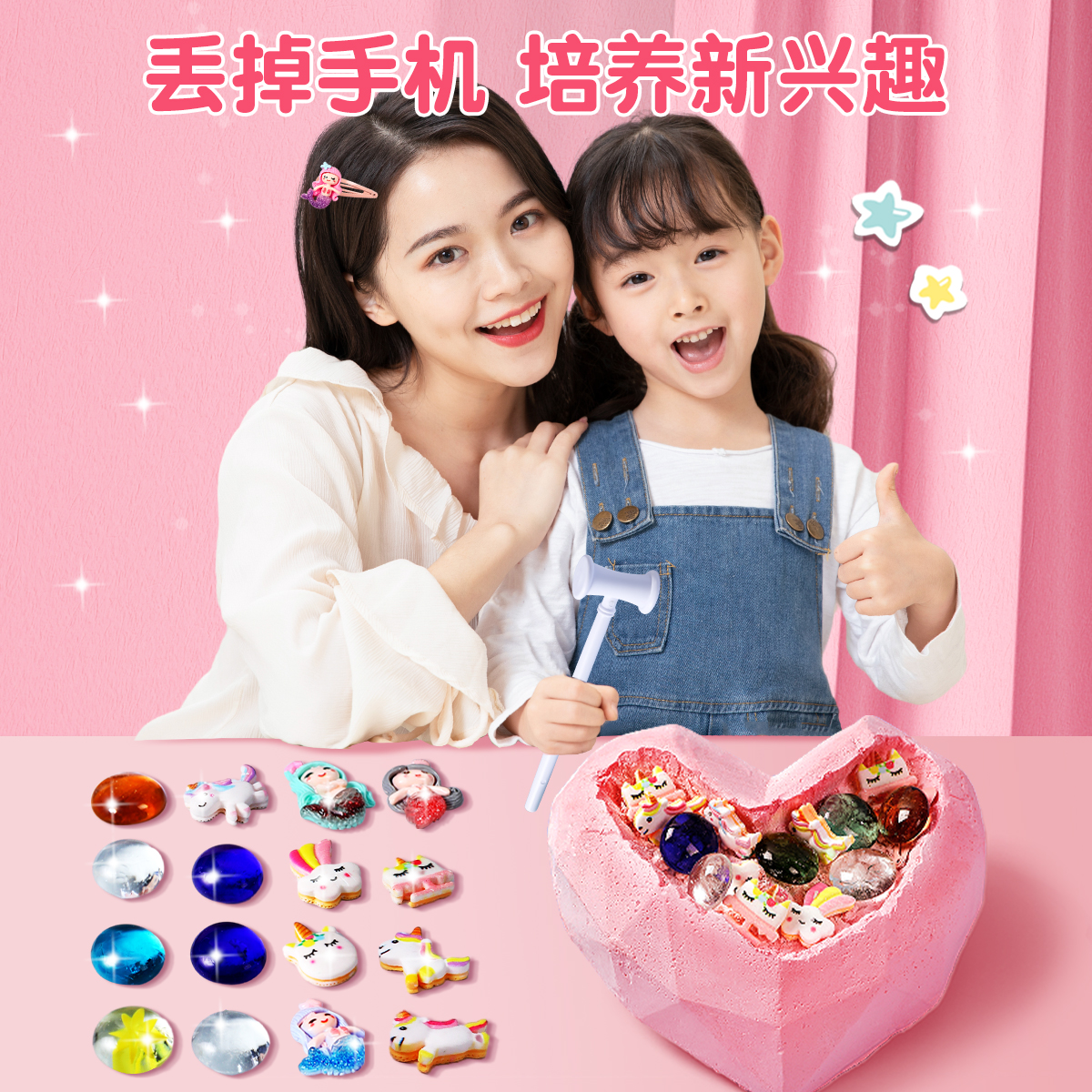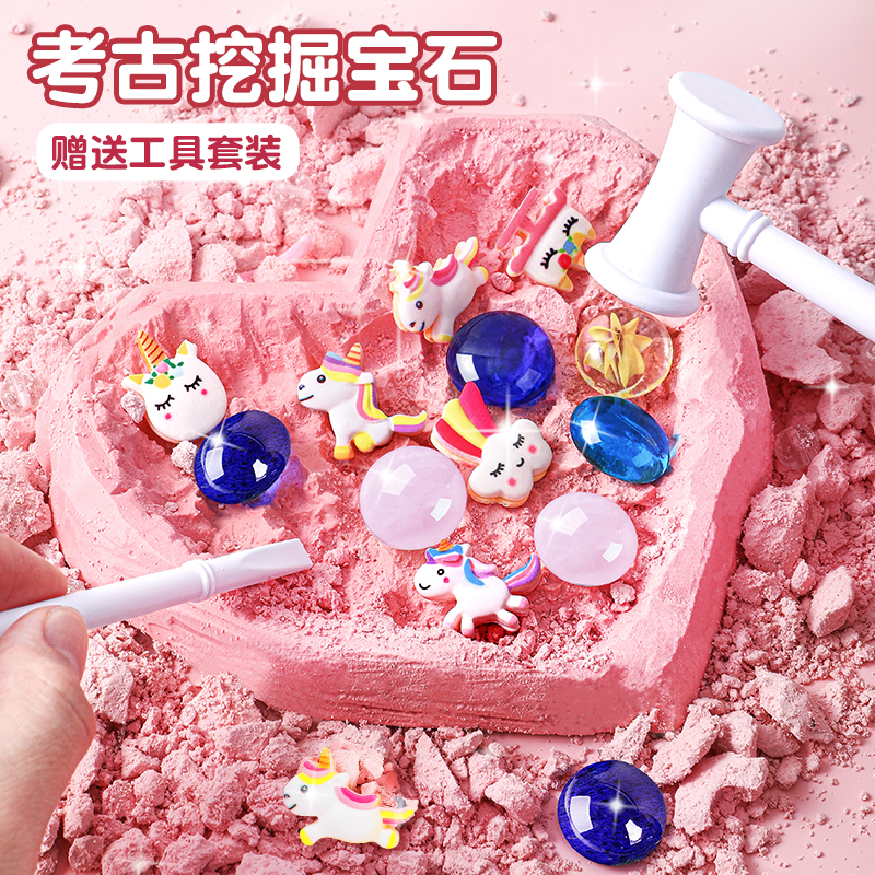 儿童考古挖掘玩具男孩女生宝藏挖宝石敲化石盲盒矿石寻宝diy手工