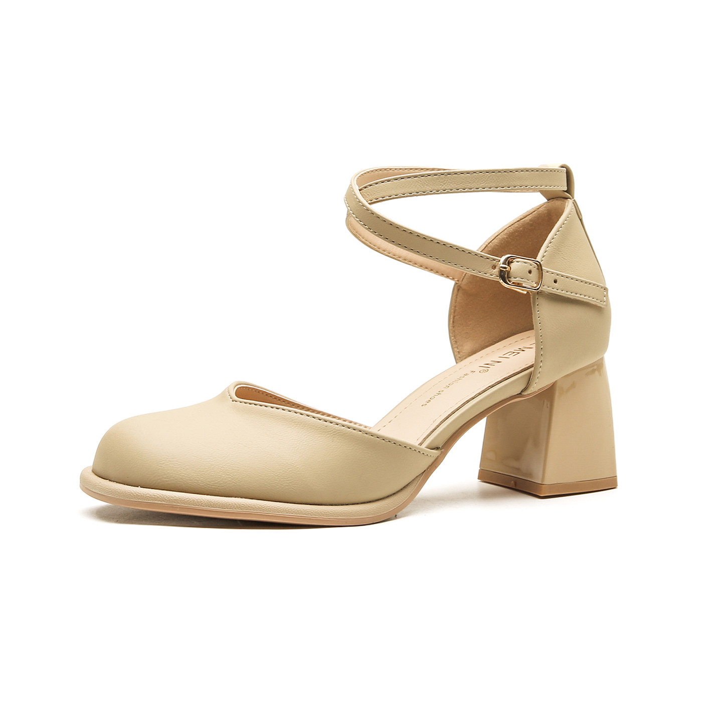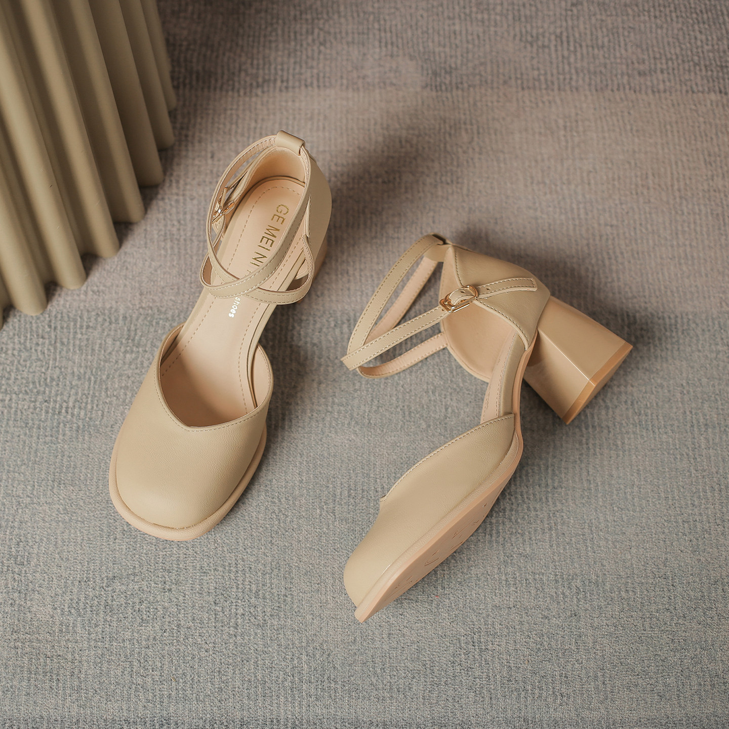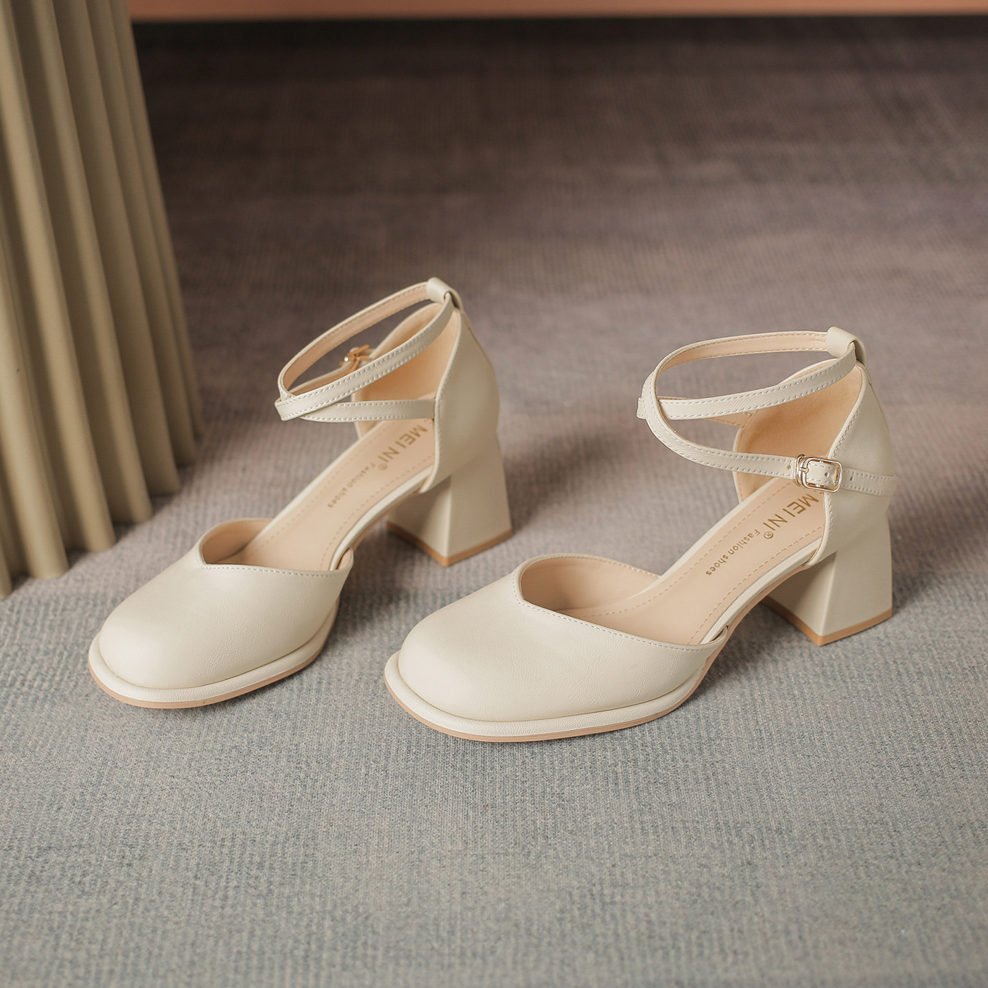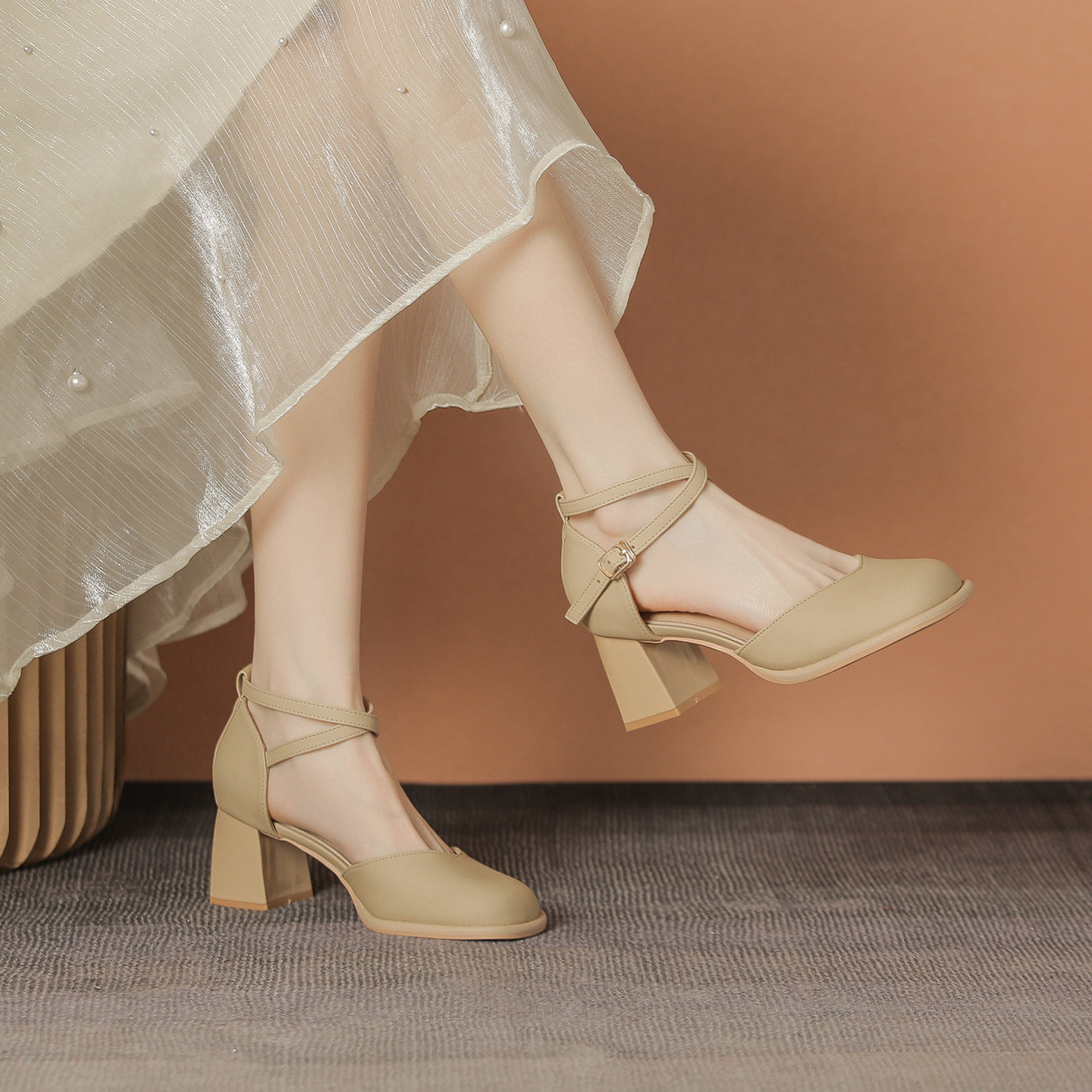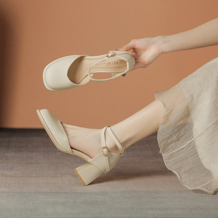 2026春夏法式包头粗跟凉鞋女玛丽珍交叉扣带中空单鞋配裙中跟鞋