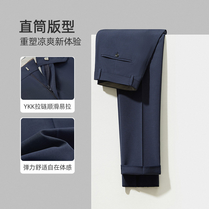 【亚麻天丝】浪登男士西裤四季新款零压感夏季直筒商务弹力长裤子