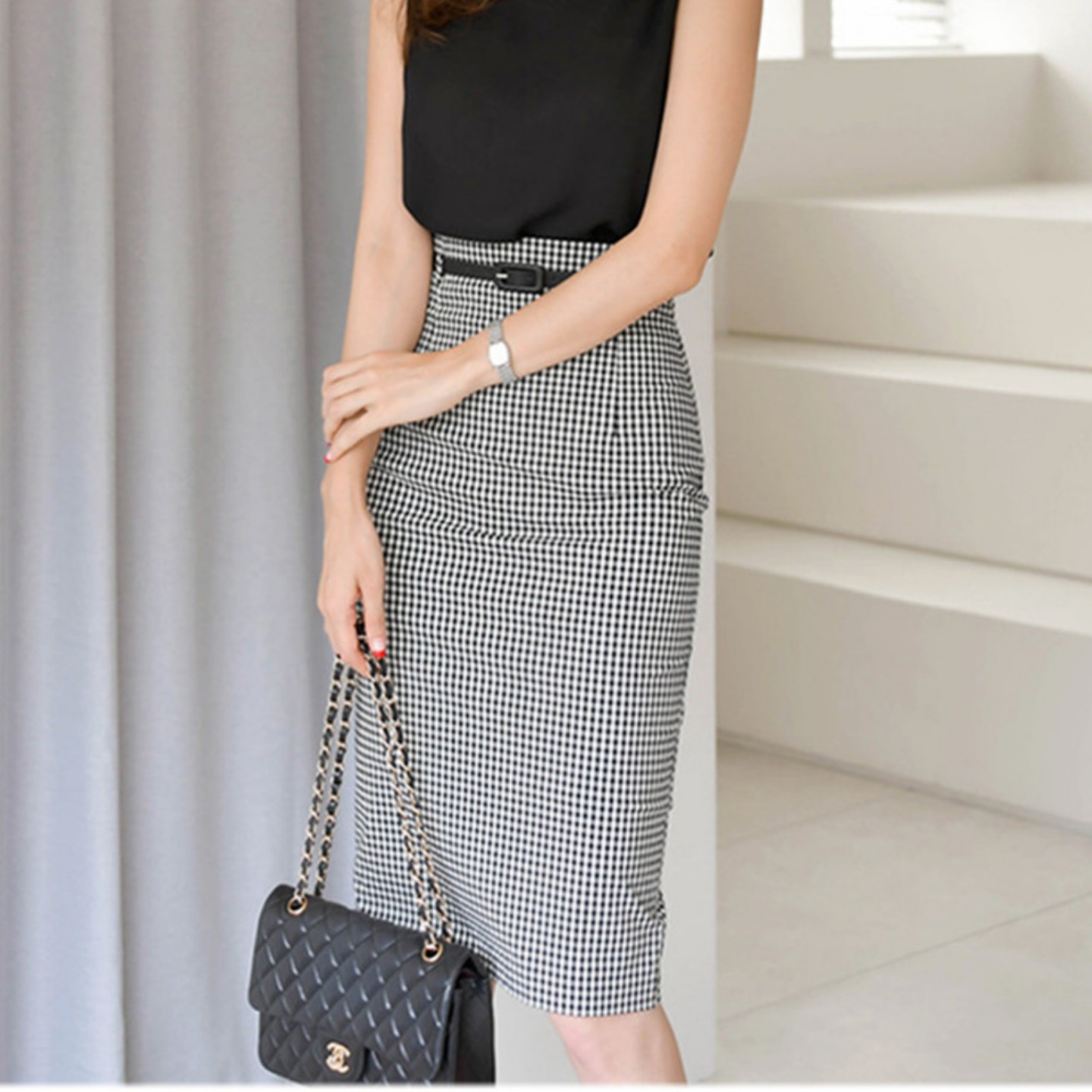 春秋新款格子半身裙职业包臀裙修身显瘦高腰裙中长款OL气质一步裙
