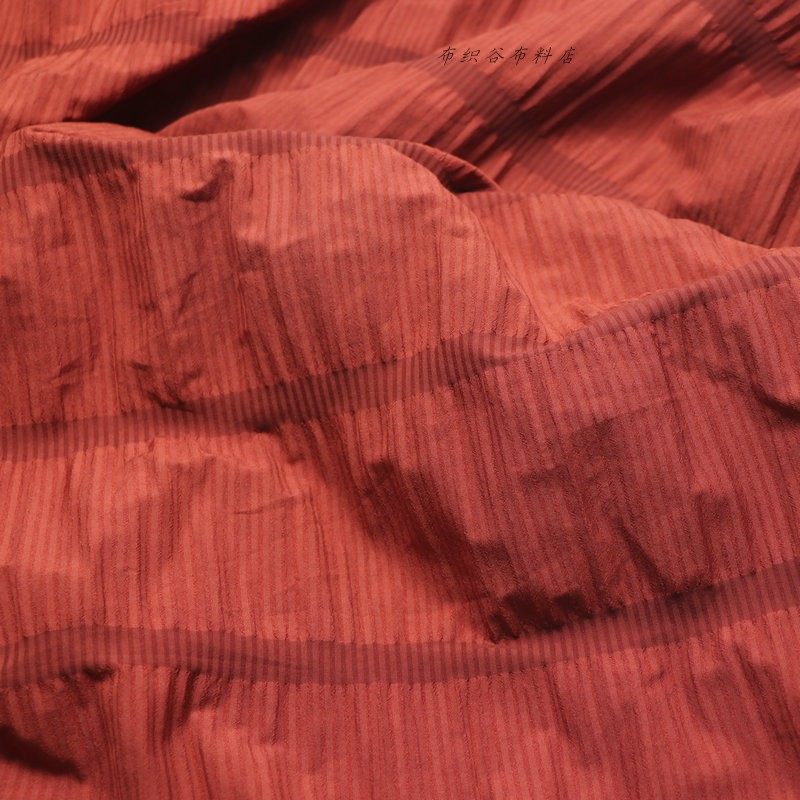 故宫墙红色风琴褶皱宽窄条纹千丝麻布料森系连衣裙上衣服装时装布