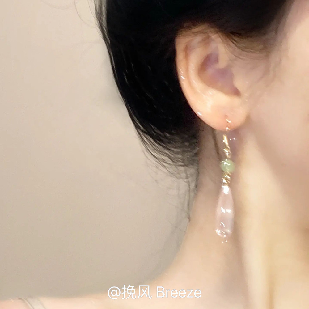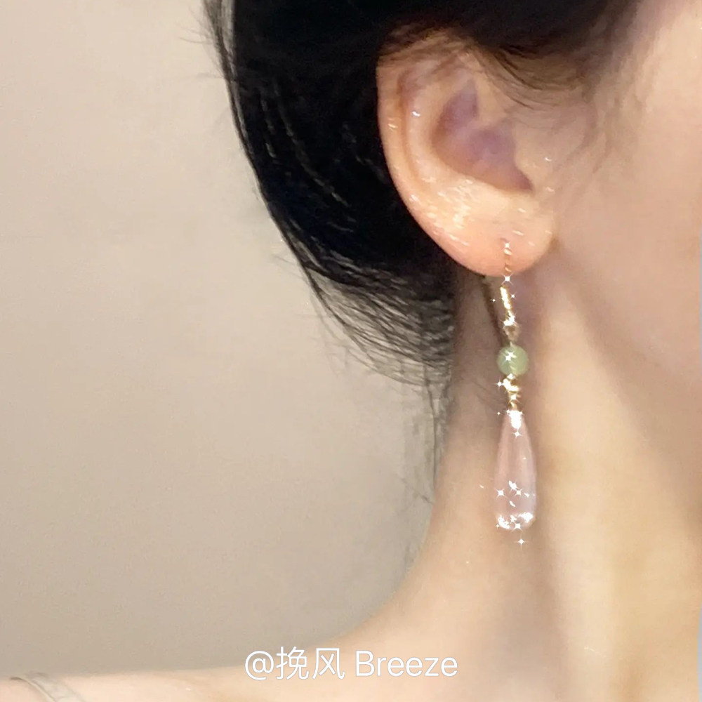 粉色水滴耳环2026新款爆款轻奢高级感耳坠复古风新中式耳钩耳饰女