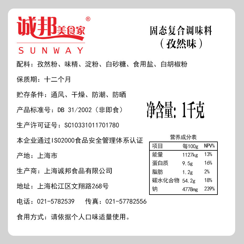 孜然粉诚邦烧烤料袋装上海调味料