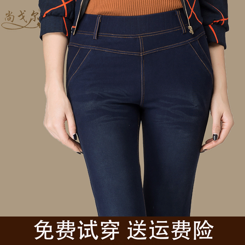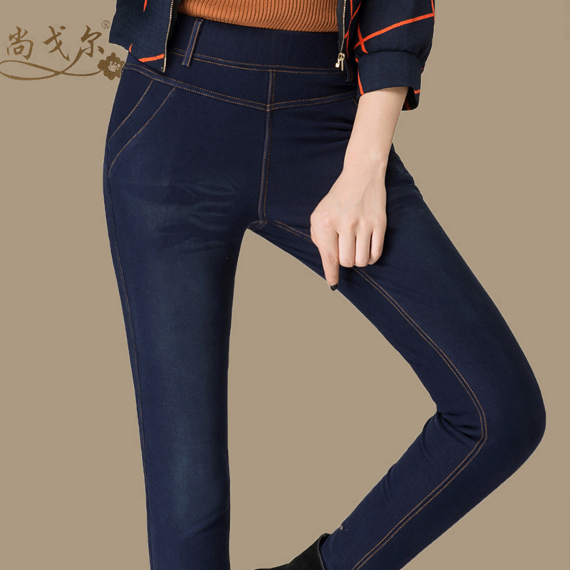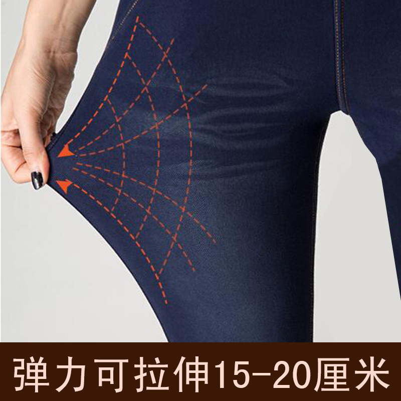 2024秋冬季仿牛仔打底裤外穿女薄款高腰超弹力紧身大码显瘦小脚裤
